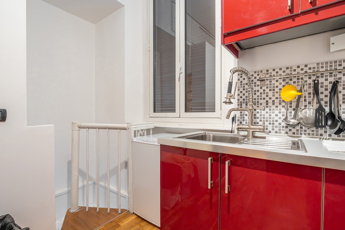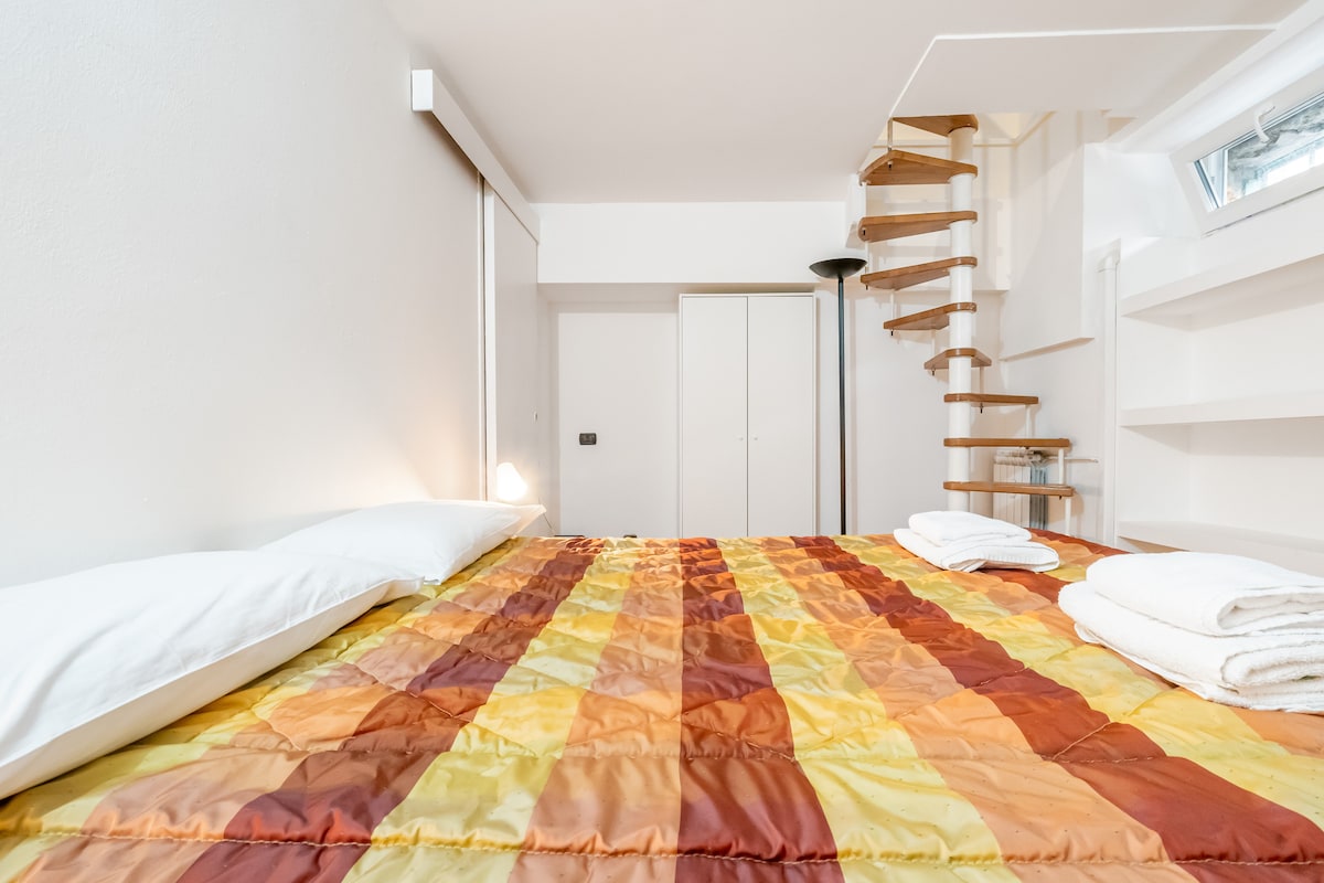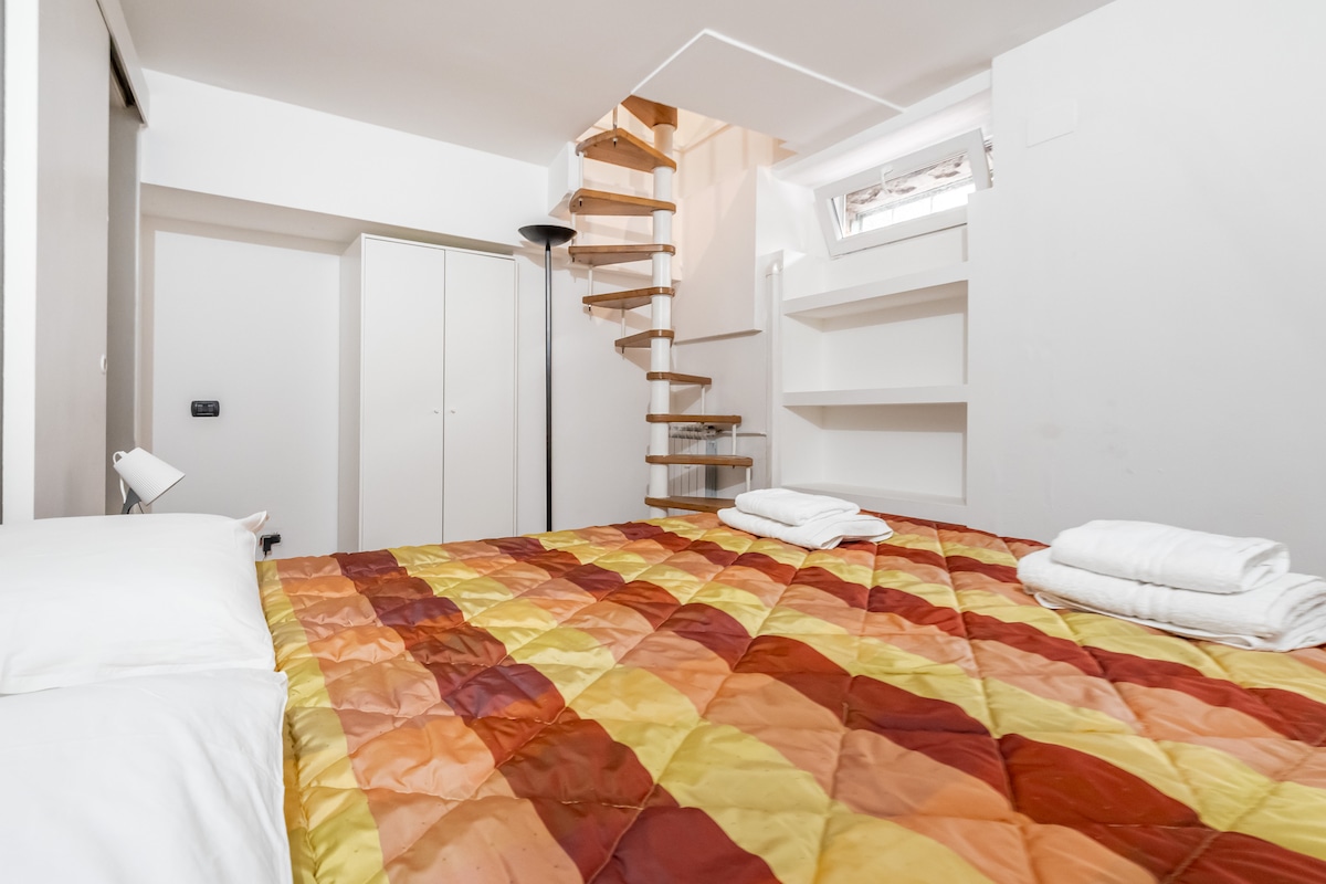The apartment of about 47 square meters is located on the ground floor and floor -1 of an elegant Milanese building, has all the main comforts and is organized as follows:-LOWER LEVEL (on the -1 floor, reachable via the internal staircase) with a double bedroom and wardrobe.