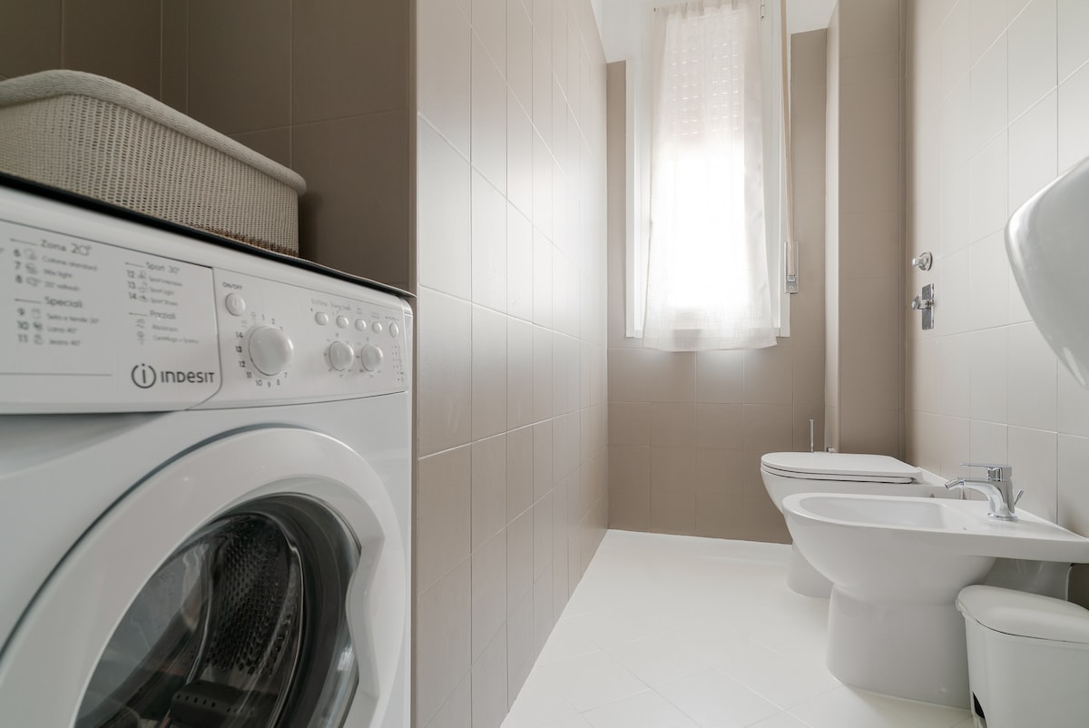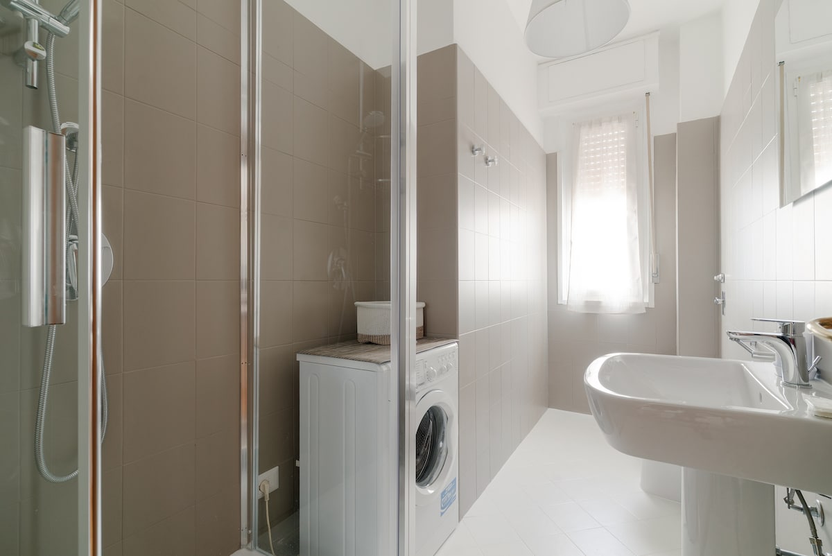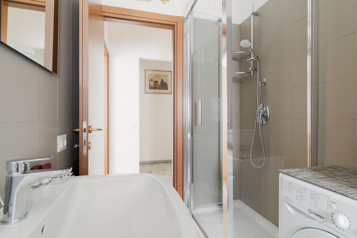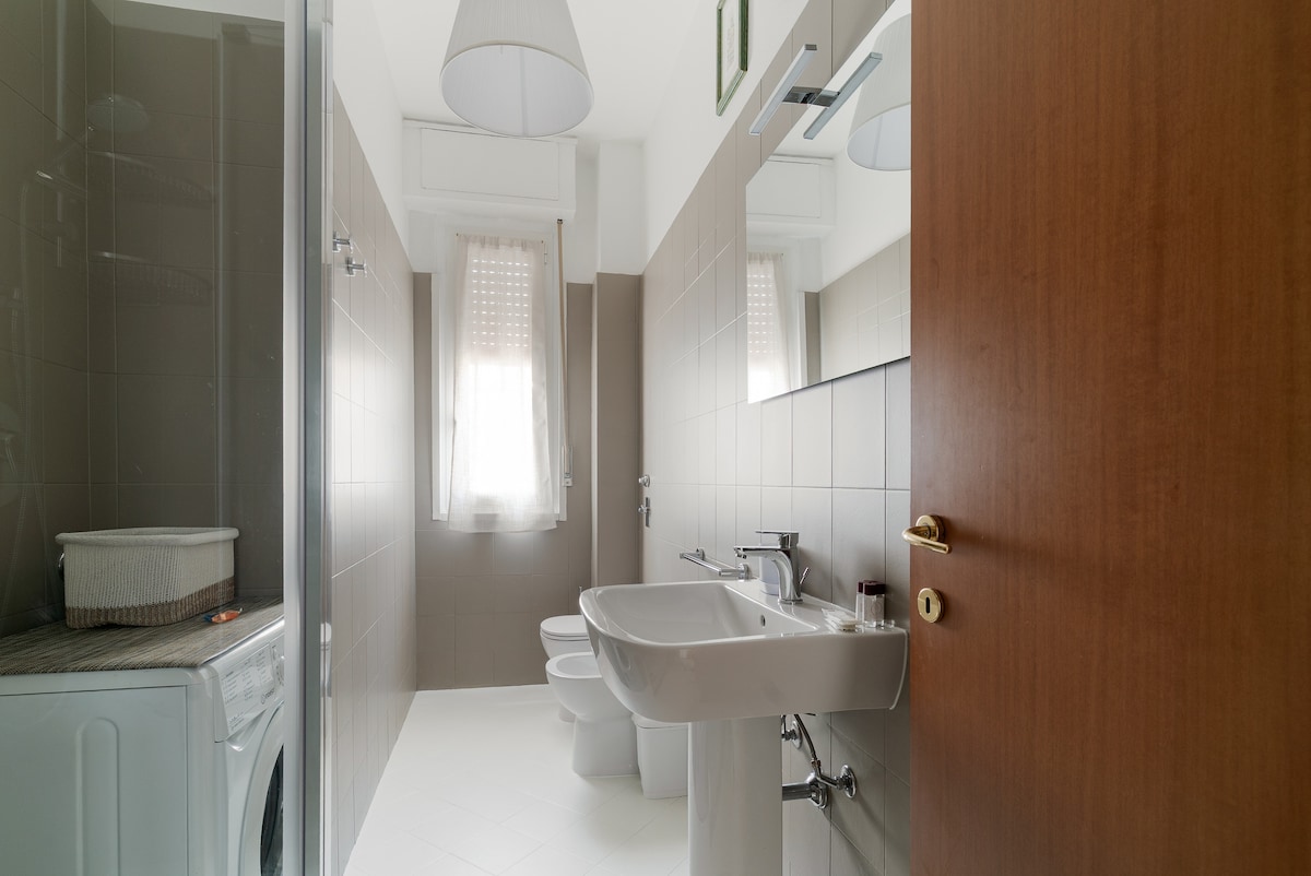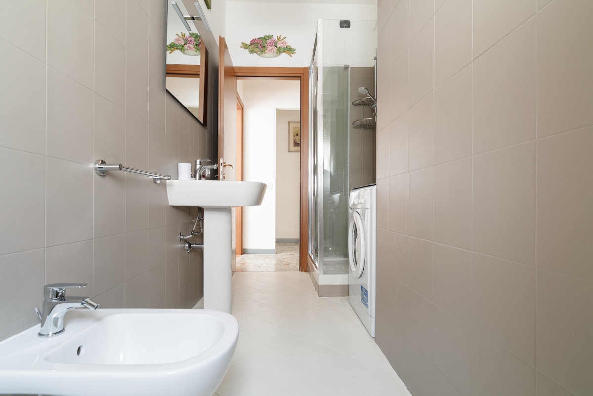 - BATHROOM with shower, washing machine, sink, bidet and WC;