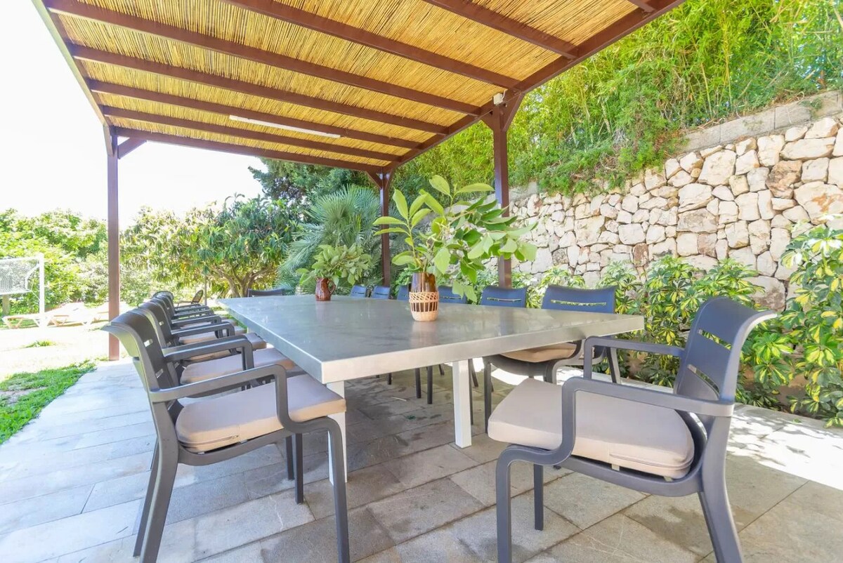 The Outdoor Space This villa comes with gorgeous outdoor spaces and partial sea views from the upper level. Spend time around your private pool, or sunbathe on a sprawling lawn dotted with fruit trees and palms. The lawn also has a wood/coal BBQ and large outdoor table - the perfect spot for alfresco dining.