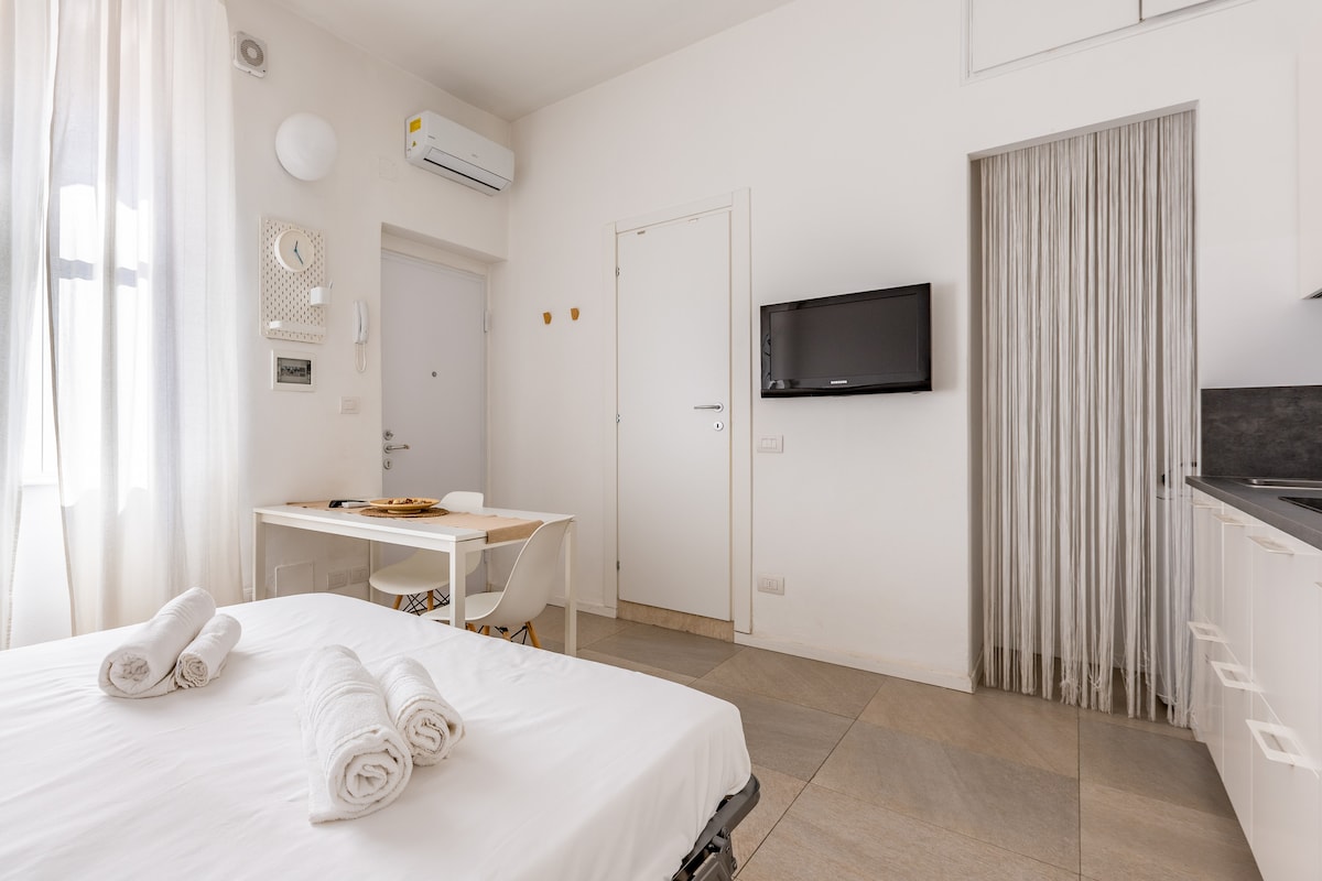 Comfortable and bright 25 sqm studio apartment, located on the first floor of a building WITHOUT elevator, just outside the center of Milan, 800m from the Pasteur M1 red line metro stop which leads to Piazza Duomo after only 5 stops!