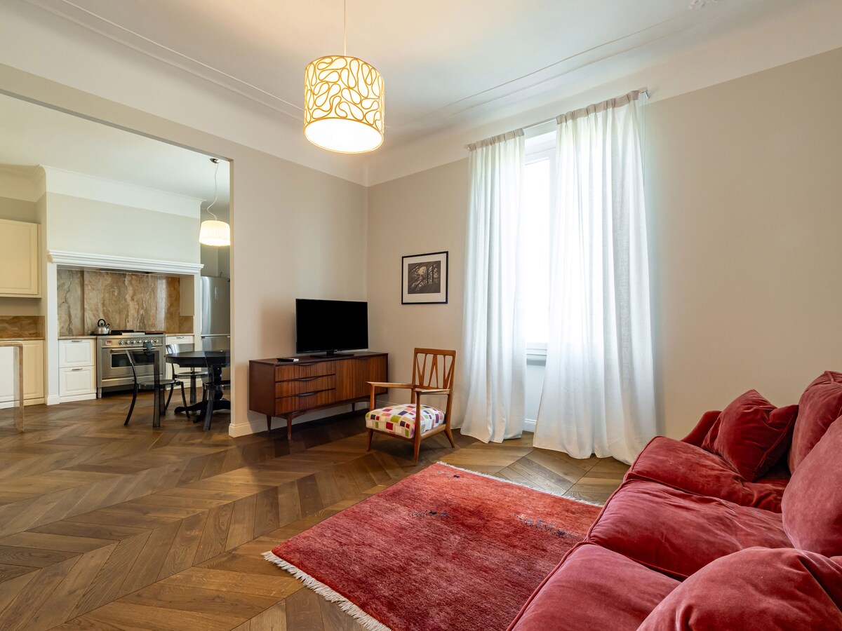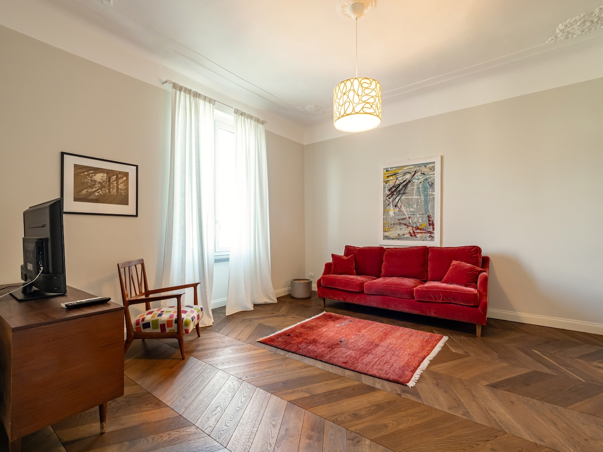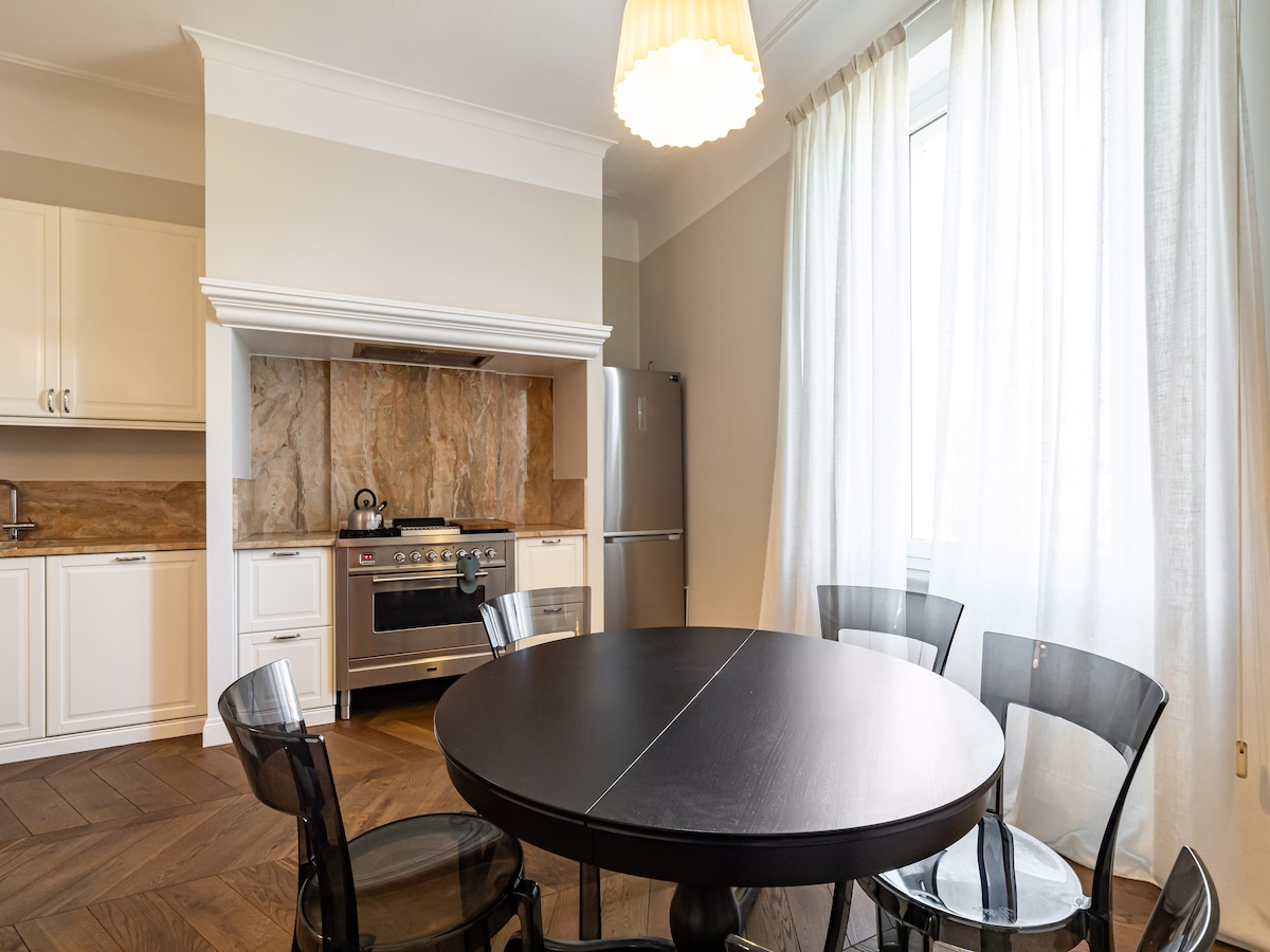 Elegant apartment located on the fifth floor of a building with a lift (NOT suitable for disabled people). There are steps at the entrance.