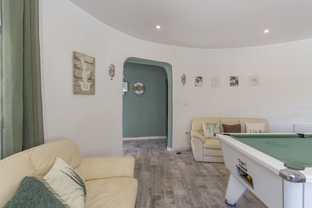 There are plenty to do to energize yourself too. Even a small children won’t get bored here. Villa Ronda has an impressive swimming pool facing the sea with an attractive wooden deck, and a pretty garden offers other entertainments. If you are tired of splashing in the water, you can sunbathe in the plush loungers, or play pool or darts, even a game of table tennis, or just sit around the big al-fresco table with your family and friends for long easy lunches, under the gorgeous palms tree.