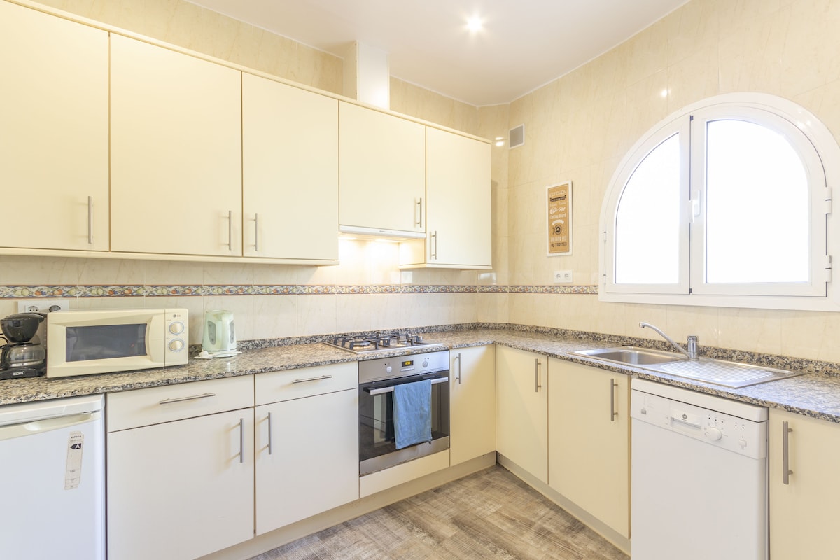Perfect for large families! The house offers plenty of space & privacy. Everything was clean. The view of the coast is amazing. The pool was clean and the terrace & garden beautifully kept. The kitchens are a bit dated and could be better equipped. The air cons worked well, though the batteries for the remotes were missing when we arrived, the hosts kindly brought replacements the next day. You can walk to a small beach near the newly built harbor. However, that beach is not as beautiful as the main beach in Calpe (5-minute drive away where you can also go shopping). There are plenty of private parking spaces reserved, but unfortunately, they are not clearly marked. Just note that the stairs in the house are quite steep, so it’s not suitable for very young/old. In summer, there are quite a few mosquitos! Two downsides: Two construction sites next to the house have not been mentioned before and we never received a response when we asked about a late check-out on the last day.