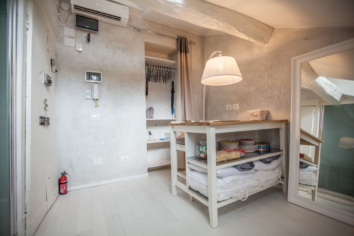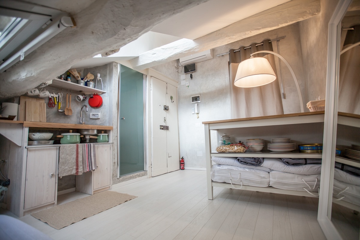Tiny but very nice mansarda in the heart of the town. Despite the apartment size it has everything for a comfortable stay. Perfect for one (preferably not tall) person, but could be ok for 2. Dozens of restaurants, coffee bars and shops around. Friendly and helpful hosts. Definitely recommended!