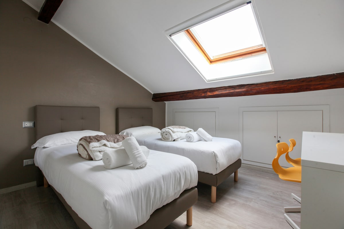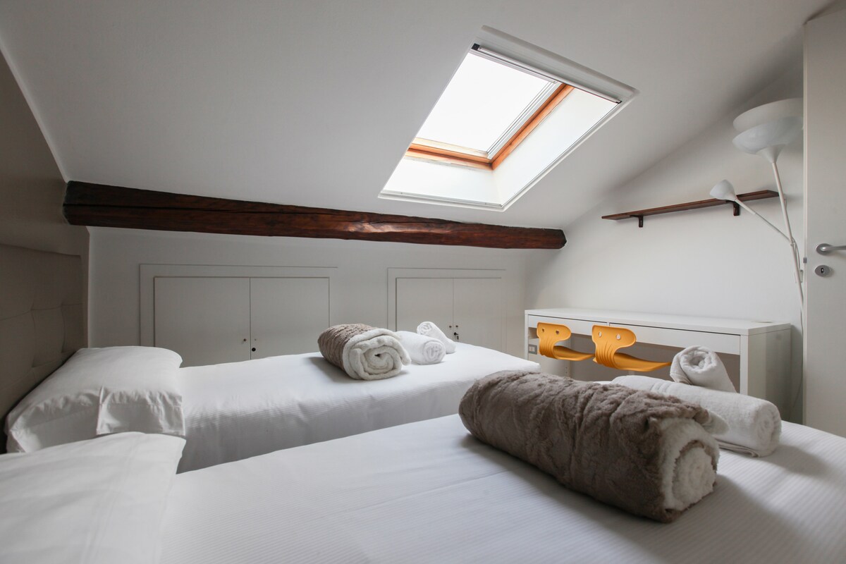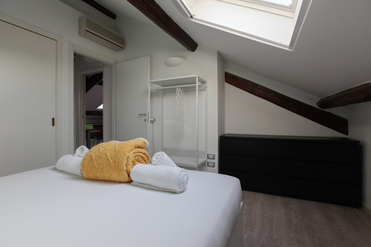 To ensure the security of your personal data, 7 days before your arrival you will receive instructions to register your documents via our Guest Portal. We need such procedure to verify your ids and docs and in order to send info to the police service "Alloggiati Web" which is Italian procedure to host guest in italy. You can find all the information on the official website alloggiatiweb.poliziadistato Switching on and off air conditioning and heating is subject to compliance with current Italian legislation (DPR 16/04/2013 n.74, DM 383 - 6/10/2022). Summer: the average air temperature must not get below 26°C (78,8 °F) for all kinds of buildings Winter: the weighted average of the air temperatures must not exceed 19°C (66,2 °F). Time and period of operation depend on the climatic zone defined by the standard. Milano Climatic Zone E: 14 hours a day from October 15th to April 15th. In case of non-agreed use of extra linen, € 15 will be charged for each linen kit used. Respect for the hours of silence from 22:00 to 08:00. There are some steps at the entrance of the building. Please note that the elevator reaches the fourth floor, to reach the apartment on the fifth floor there is a flight of stairs. To reach the entrance door of the property, once you reach the fifth floor, open the door to the left and walk through the attic. The apartment matches the last door. Please note that the ceiling of the apartment is sloping. There is a step at the entrance of the terrace. The shower tray is raised. - For check-ins after the scheduled times, the following supplements are required: * after 9.30 pm and until 11 pm a supplement of 25 euros is required.We are unable to check in after 11pm.