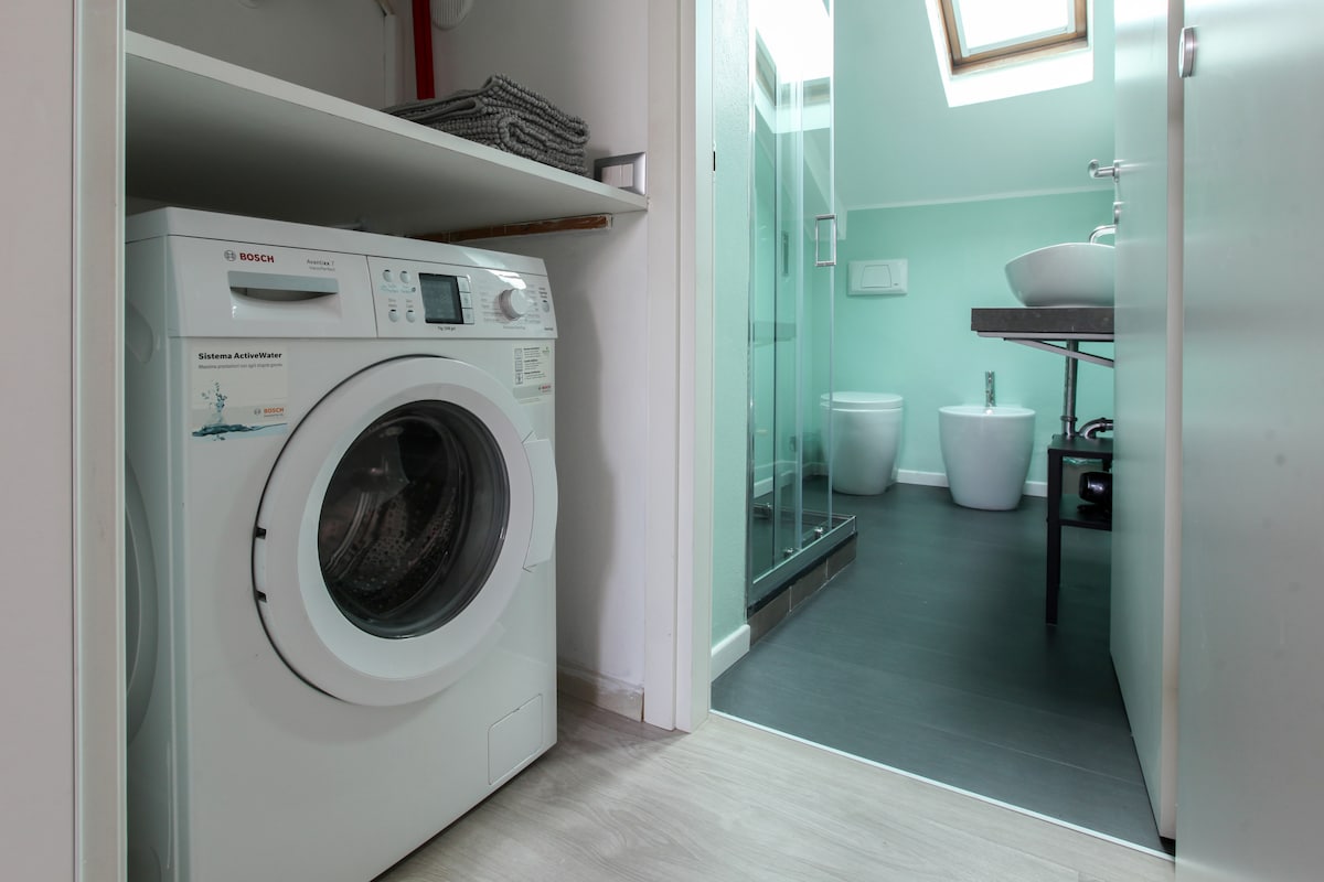 - BATHROOM with shower, sink, washing machine, bidet and WC;