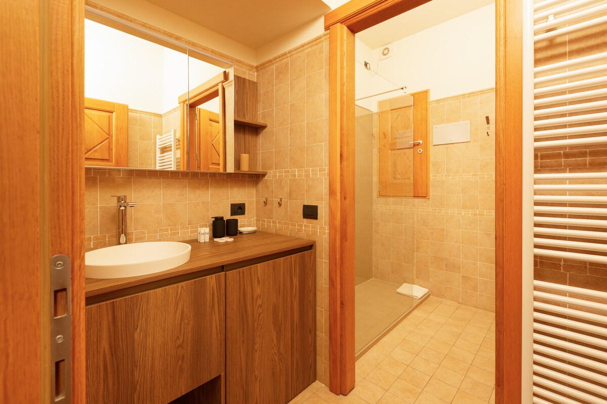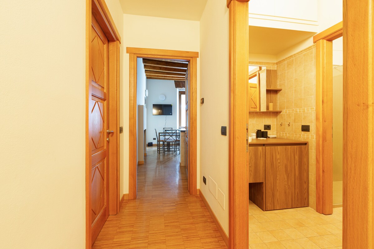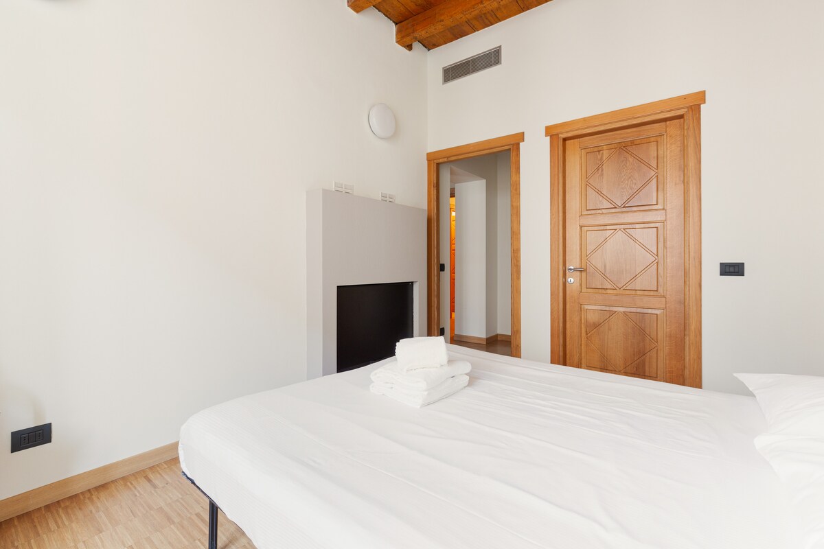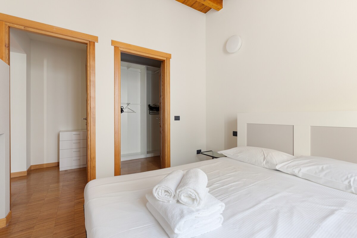 The internal space is organized as follows:- BEDROOM with double bed, walk-in closet and chest of drawers;