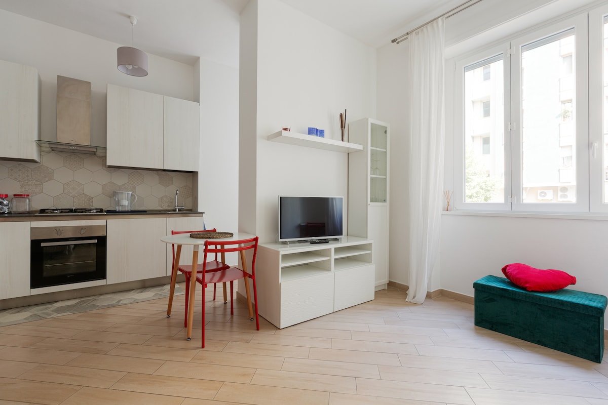 The apartment is located on the first floor of a building with a lift (stairs to access it). To ensure the security of your personal data, 7 days before your arrival you will receive instructions to register your documents via our Guest Portal. We need such procedure to verify your ids and docs and in order to send infos to the police service "Alloggiati Web" wich is Italian procedure to host guest in italy. You can find all the information on the official website alloggiatiweb.poliziadistato Switching on and off air conditioning and heating is subject to compliance with current Italian legislation (DPR 16/04/2013 n.74, DM 383 - 6/10/2022). Summer: the average air temperature must not get below 26°C (78,8 °F) for all kinds of buildings Winter: the weighted average of the air temperatures must not exceed 19°C (66,2 °F). Time and period of operation depend on the climatic zone defined by the standard. Milano Climatic Zone E: 14 hours a day from October 15th to April 15th. Please note: completing the registration is MANDATORY in order to receive the instructions and access the apartment. In case of non-agreed use of extra linen, € 15 will be charged for each linen kit used. Respect for the hours of silence from 22:00 to 08:00. This flat has an Automated Smartlock door system, the instructions to access the apartment will be sent automatically only after completing the registration, 7 days before the arrival date.