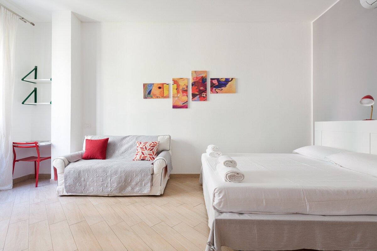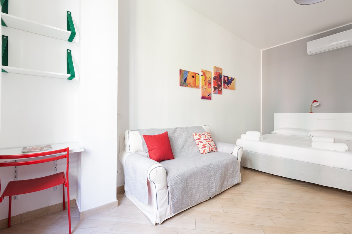 Bright 30 sqm studio apartment, able to accommodate up to 3 people, equipped on the first floor of a building with a lift (stairs to access it).