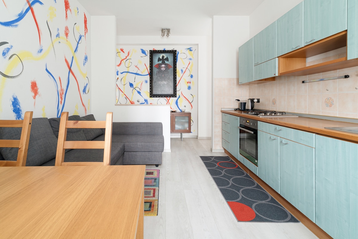 Comfortable 45m2 apartment located on the first floor of a building with a lift (steps to access). The accommodation can accommodate 2 people and is located in the Giambellino district, a residential area well served by public transport and full of services, such as restaurants, bars, pharmacies and shops. The "M4 Gelsomini" stop is only a 5-minute walk away, the tram 14 stop is 2 minutes away.
