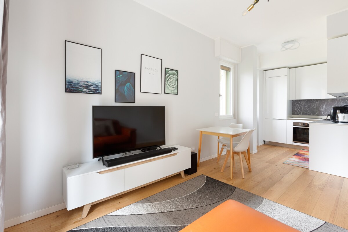 The apartment is internally composed of:-LIVING ROOM with relaxation area with sofa, Smart TV and access to the balcony.