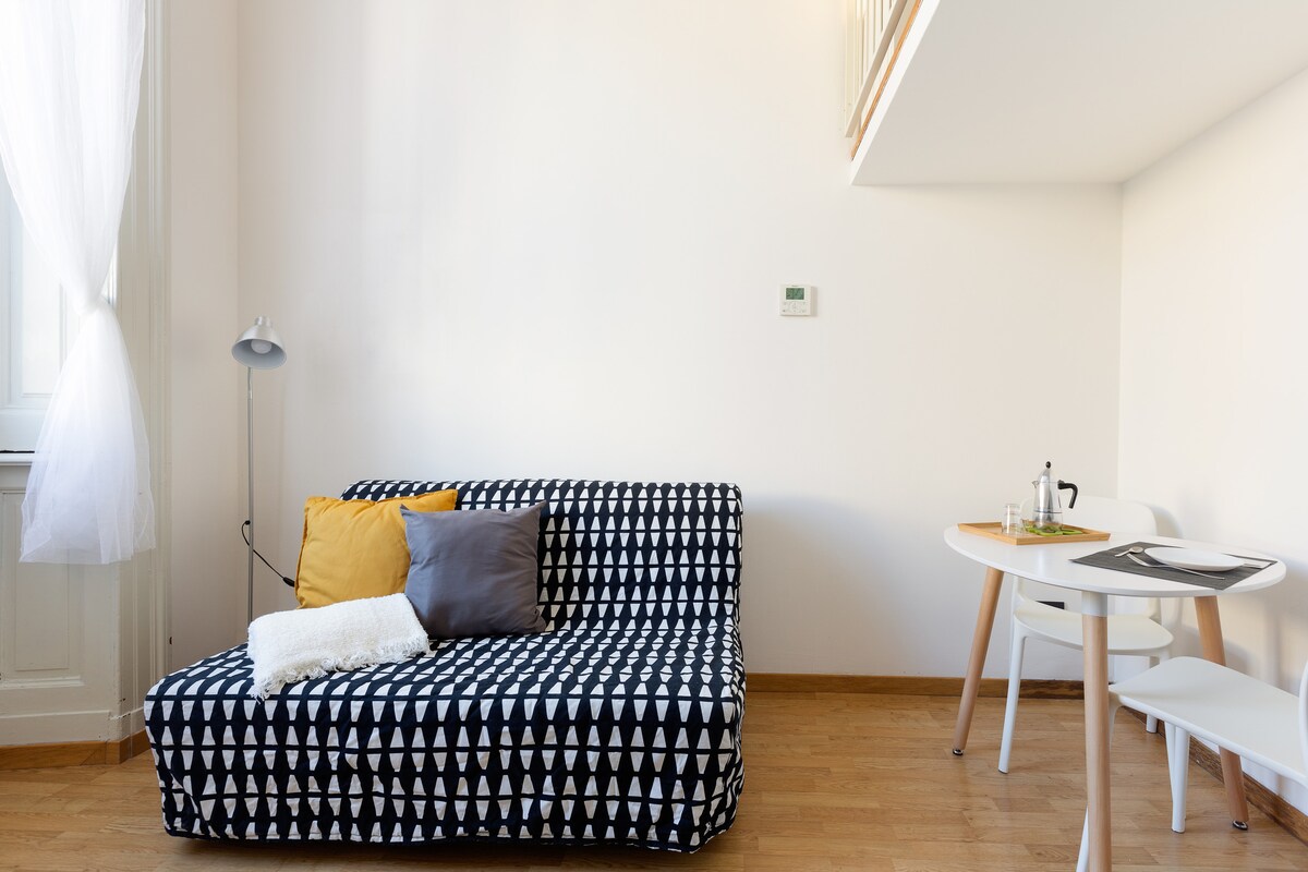 To ensure the security of your personal data, 7 days before your arrival you will receive instructions to register your documents via our Guest Portal. We need such procedure to verify your ids and docs and in order to send info to the police service "Alloggiati Web" which is Italian procedure to host guest in italy. You can find all the information on the official website alloggiatiweb.poliziadistato Switching on and off air conditioning and heating is subject to compliance with current Italian legislation (DPR 16/04/2013 n.74, DM 383 - 6/10/2022). Summer: the average air temperature must not get below 26°C (78,8 °F) for all kinds of buildings Winter: the weighted average of the air temperatures must not exceed 19°C (66,2 °F). Time and period of operation depend on the climatic zone defined by the standard. Milano Climatic Zone E: 14 hours a day from October 15th to April 15th. There are 5 steps to climb at the entrance to the building. -The washer / dryer room is shared with the other guests and is located on floor-1. It is paid and it works every day from 8AM till 7PM KITCHEN CORNER VERY SMALL: WE SUGGEST YOU TO USE IT ONLY FOR BREAKFAST PAY ATTENTION: CHANCE OF NOISES FROM OUTSIDE FROM EARLY MORNING DUE TO HEAVY TRAFFIC IN THE ROAD SHOWER BOX SMALL SIZE. dimensioni box doccia 65cmx65cm; shower cubicle size 65cmx65cm; from shower tray to ceiling height 2.20m; in the sink area - floor mirror height 1,75m Internal staircase to reach the upper level The 2 levels are not acoustically isolated from each other and there are no doors separating them The accommodation is not recommended for those looking for a home "to live in" or for those who intend to use the kitchenette regularly to prepare lavish lunches or dinners. It is a smart/budget accommodation, to be used mainly as a support for the night In case of non-agreed use of extra linen, € 15 will be charged for each linen kit used. - For late check-in, the following supplement is required: * after 9.30 pm and until 11 pm a supplement of 25 euros is required. Silence from 22.00 to 8.00.