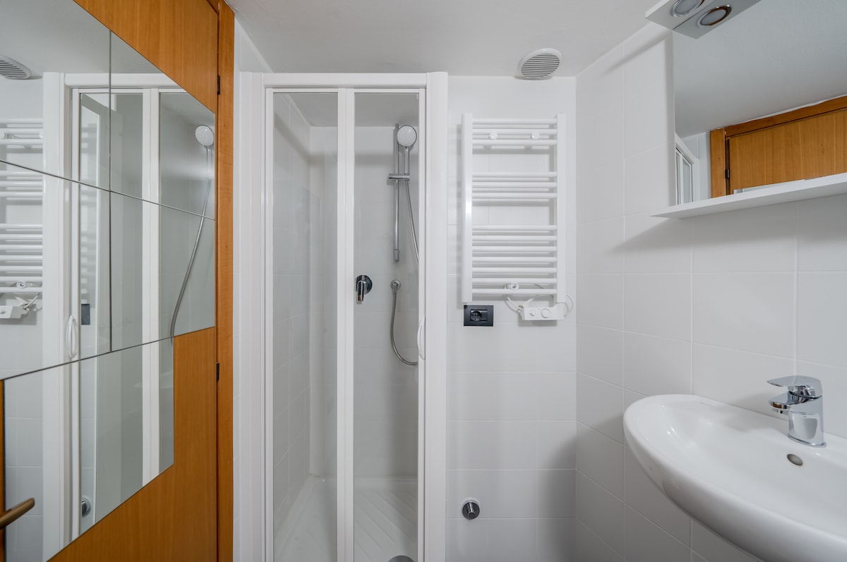 shower cubicle size 65cmx65cm; from shower tray to ceiling height 2.20m; in the sink area - floor mirror height 1,75m