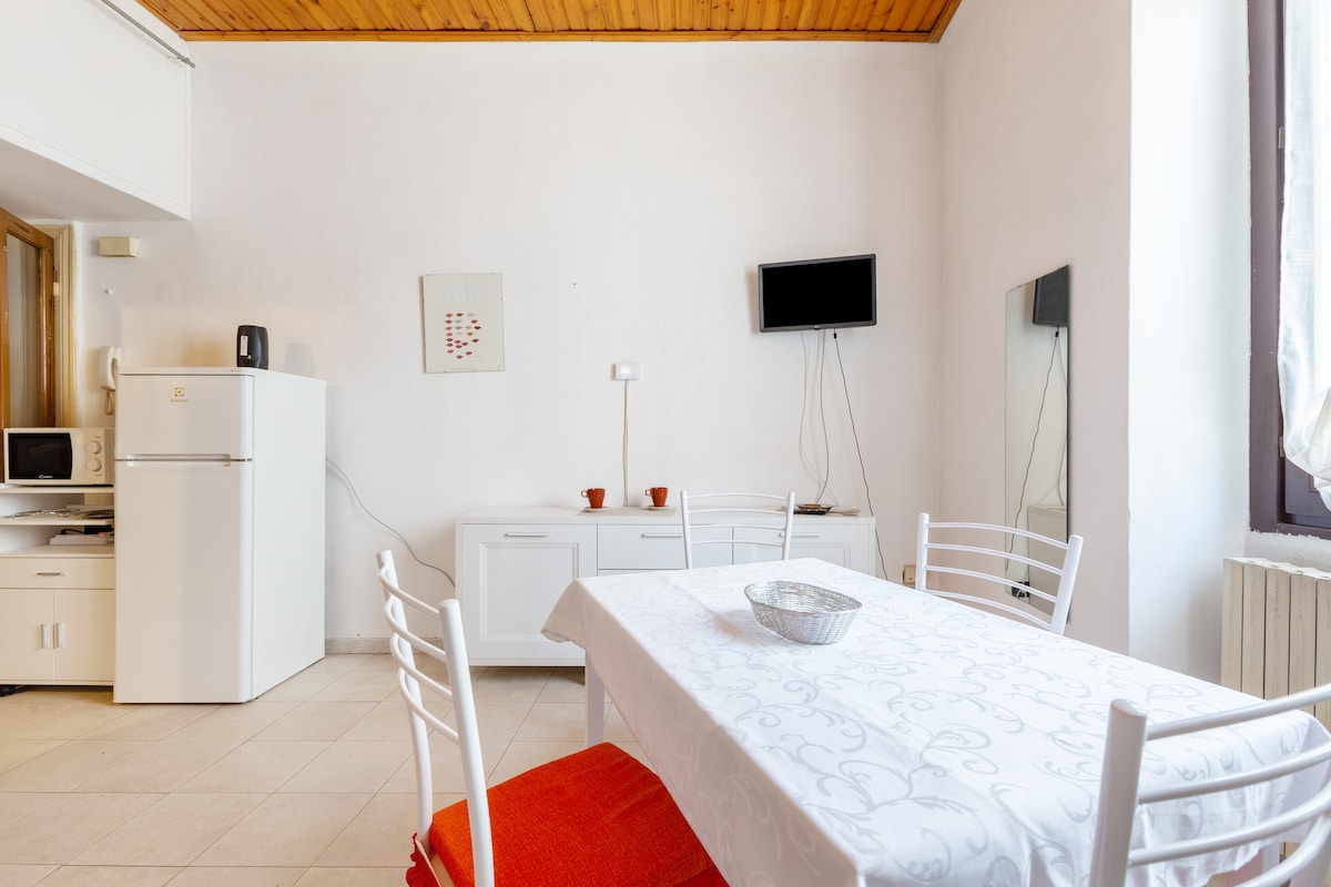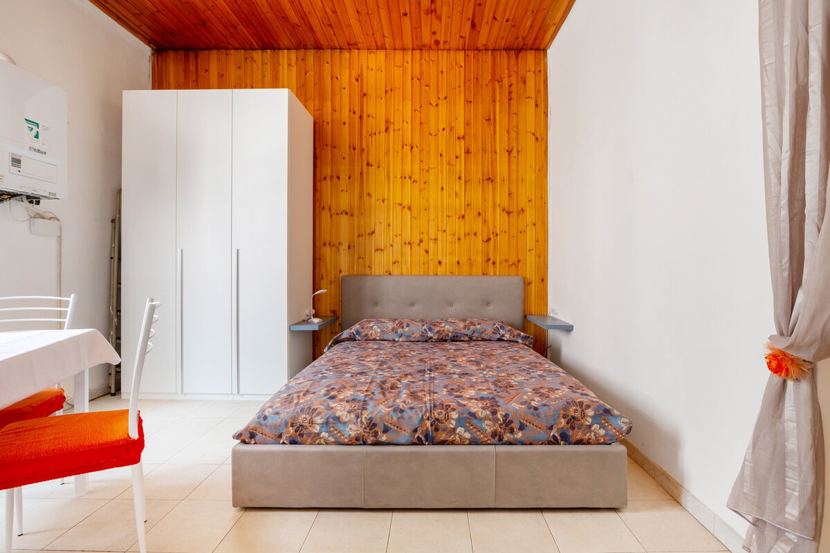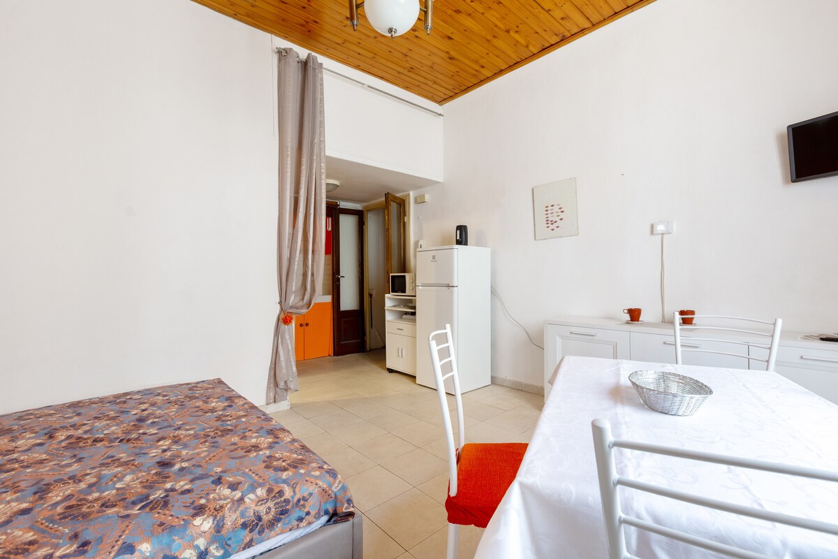 The open space accommodation is divided into a living area with kitchenette equipped with gas hob, traditional oven and refrigerator and a sleeping area with double bed and wardrobe.Toilet with bathtub and bidet; 1 step to climb to access the bathroom