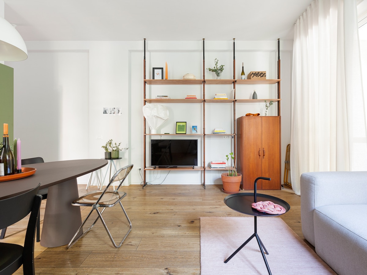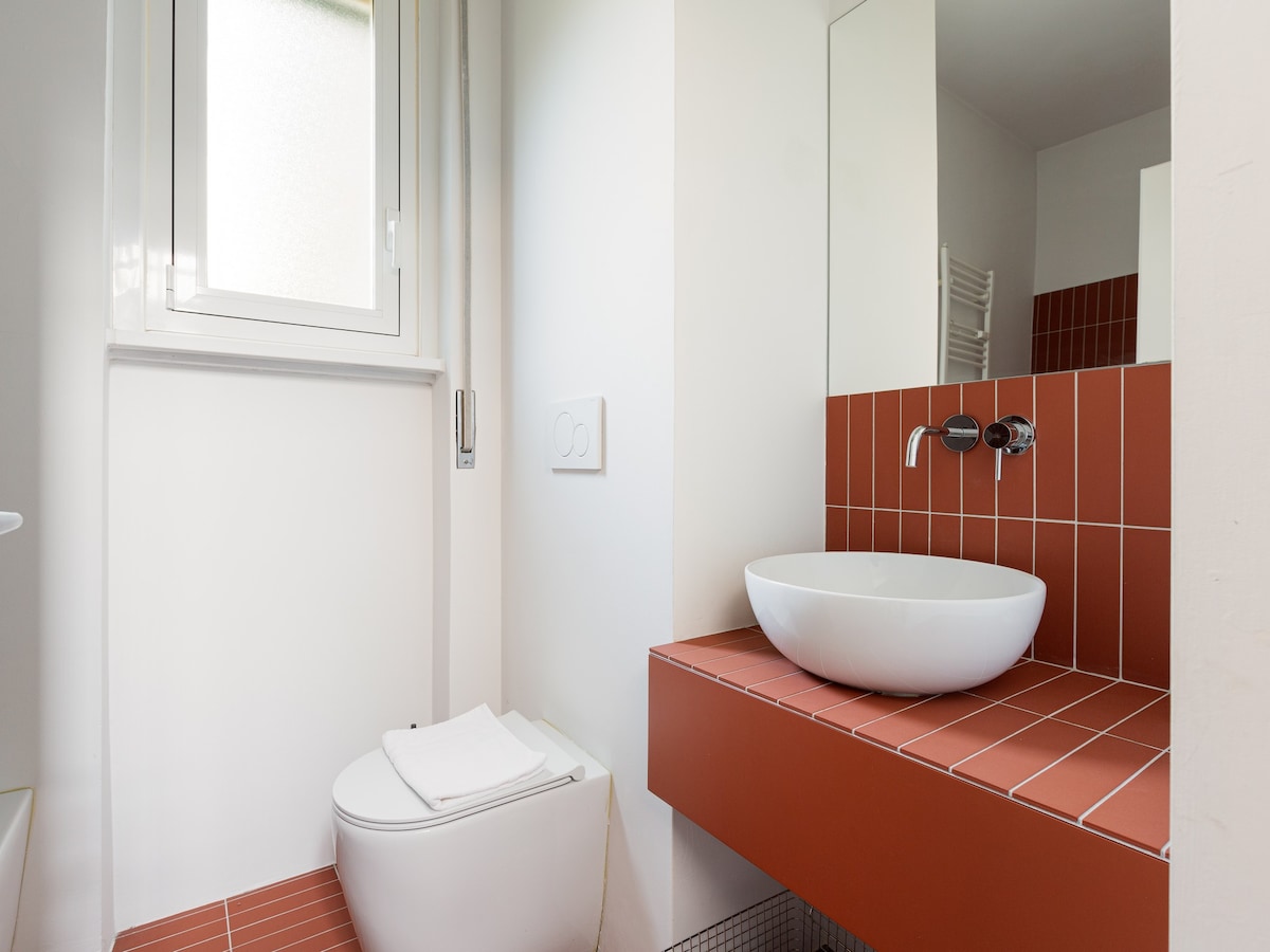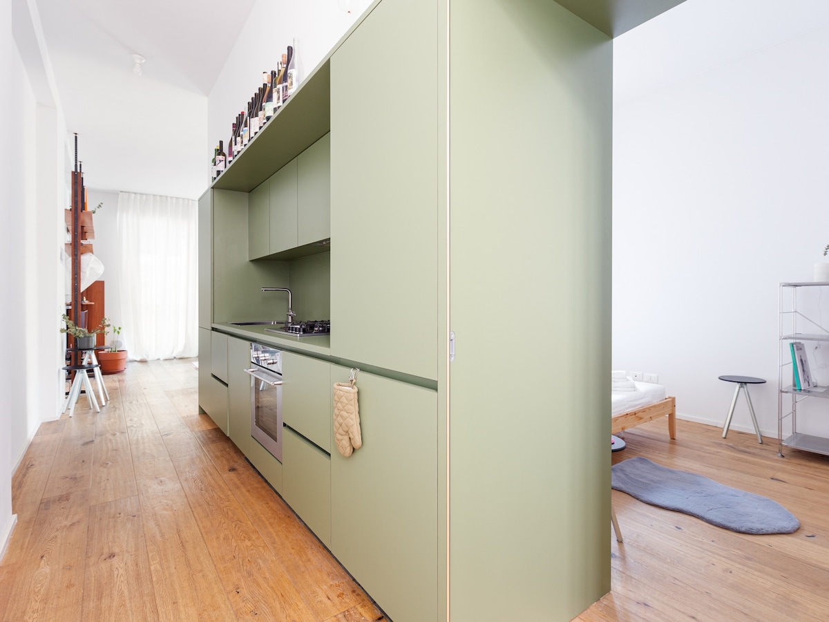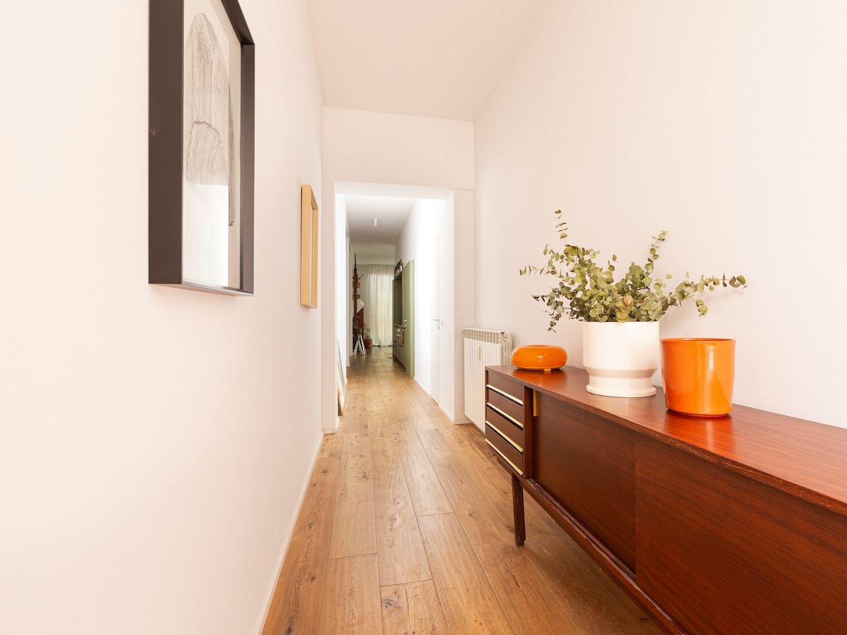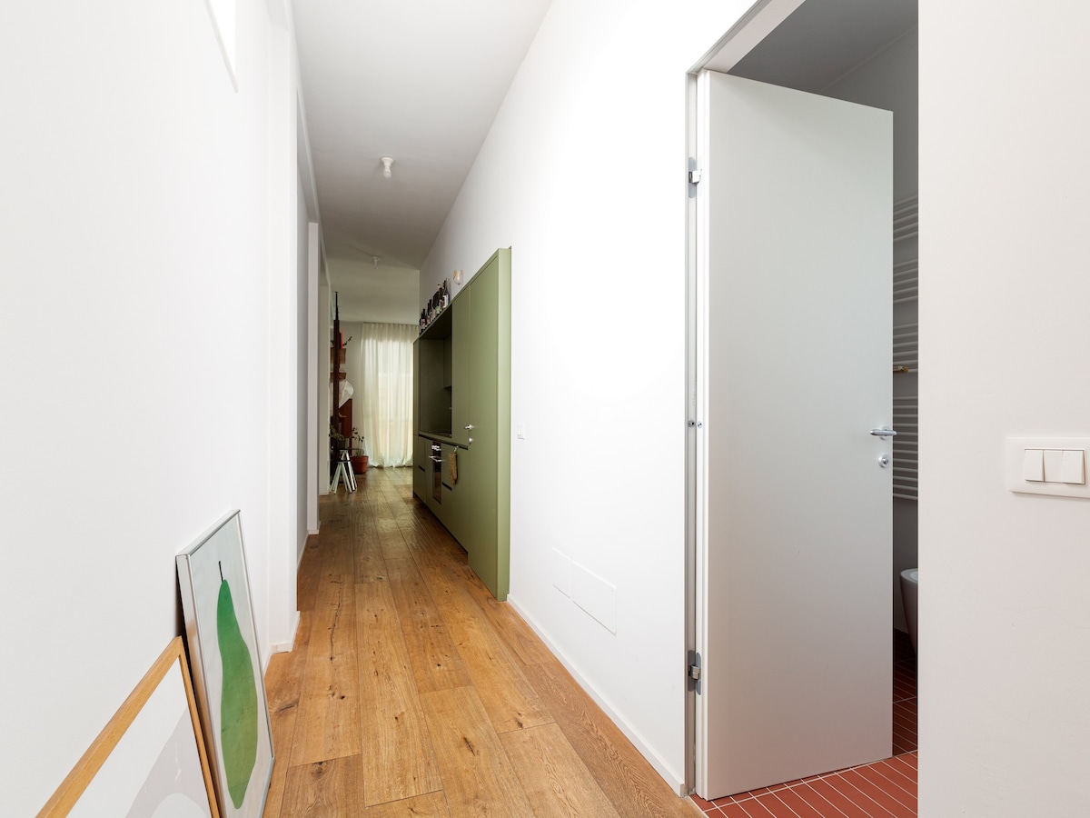 Modern 70 sqm apartment located on the mezzanine floor of a building WITHOUT a lift (stairs to access it), able to accommodate up to 2 people!
