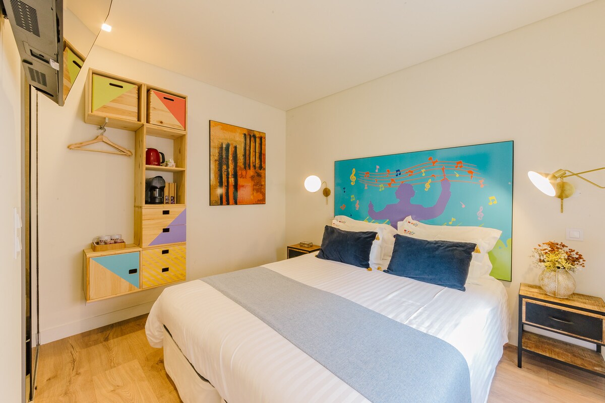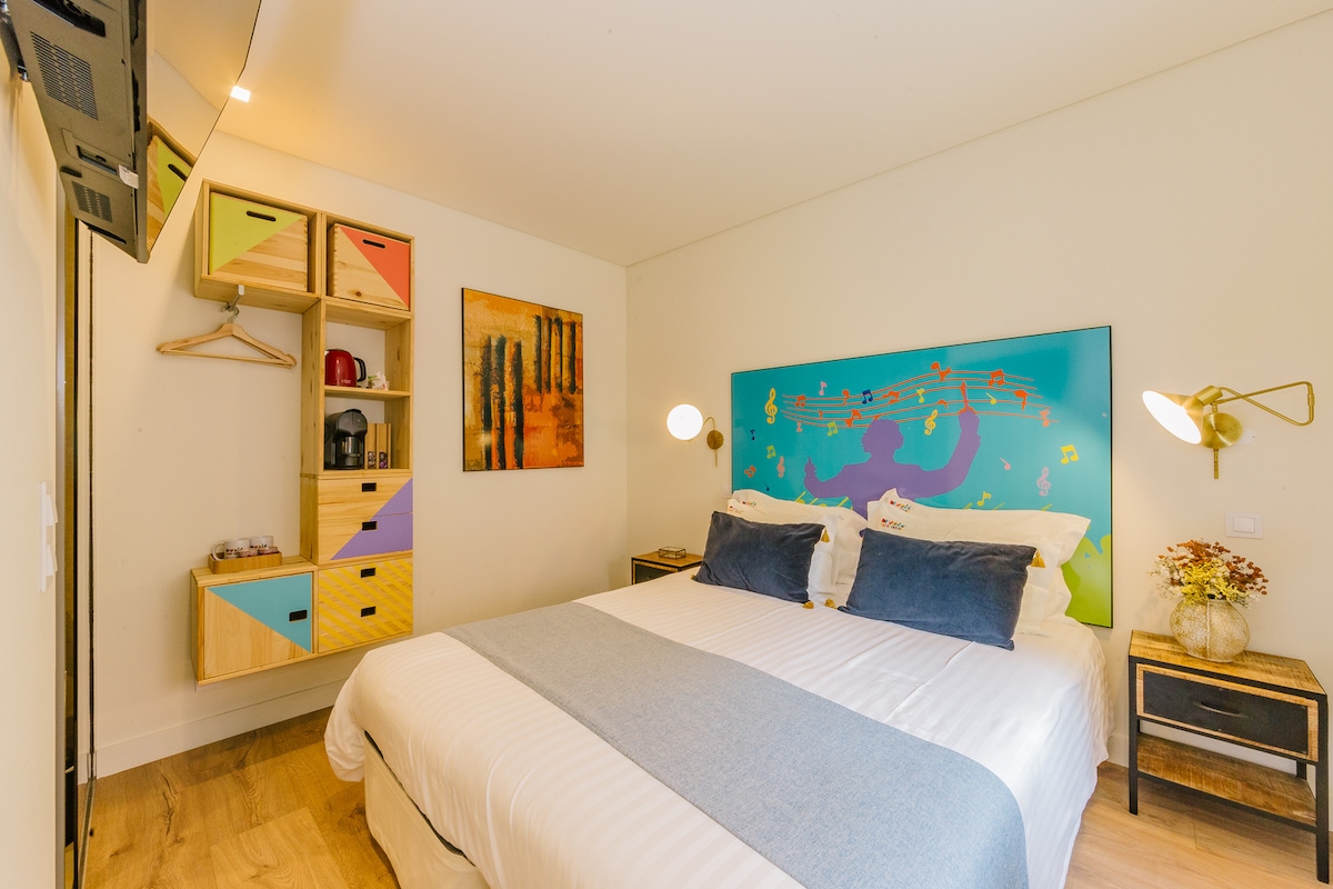 Located next to the famous Conservatorio Nacional, a music school founded in 1837 inspired the design of the rooms to translate the music and Lisbon mood through its textures, colours, and materials.