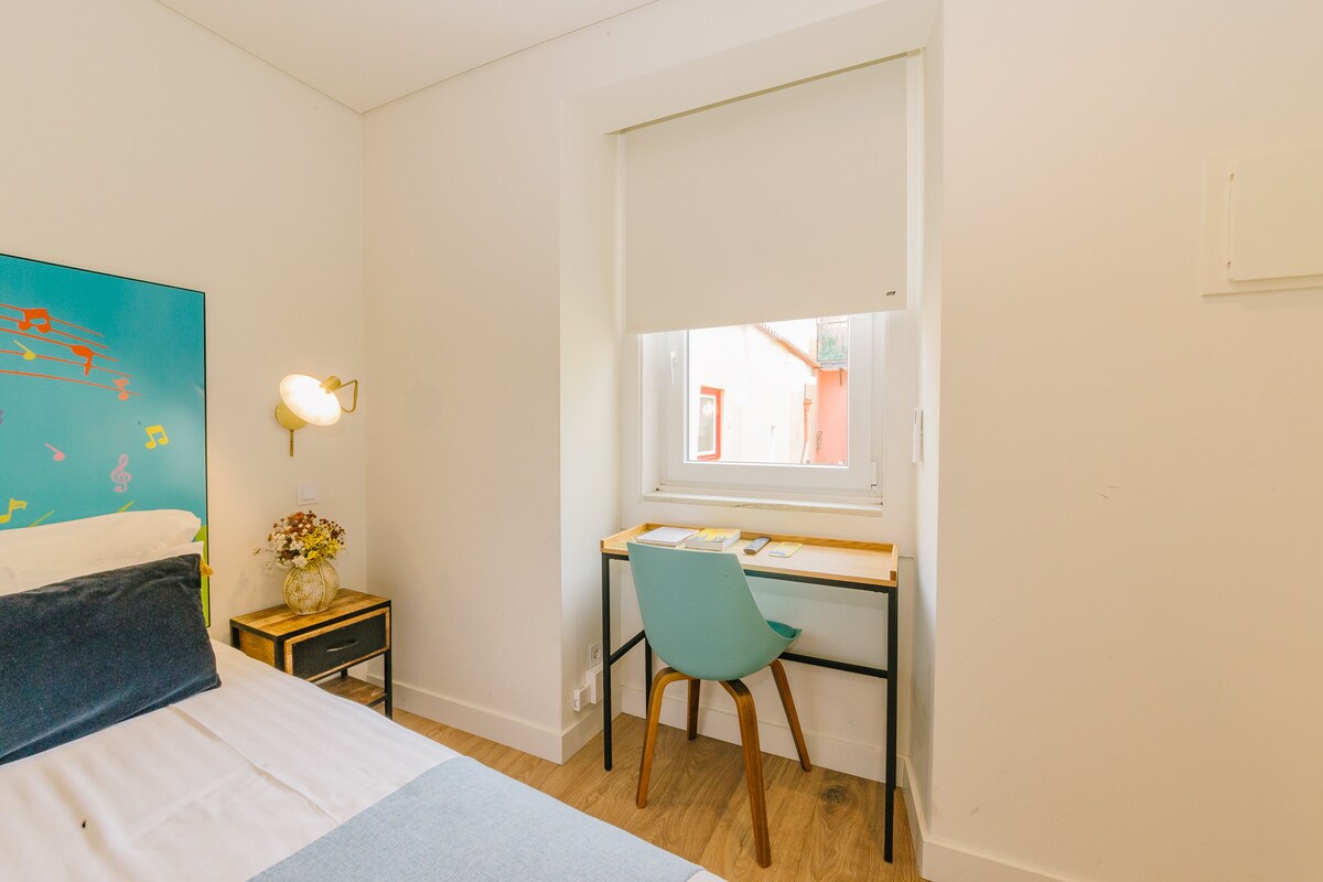 A small but cozy room, perfect for a few days in Lisbon. Clean, fresh, super comfortable bed with a beautiful style. Great area to explore the city center or to take the means. Check-in at the top with the code. I highly recommend the Music Guest House, I would definitely go back.