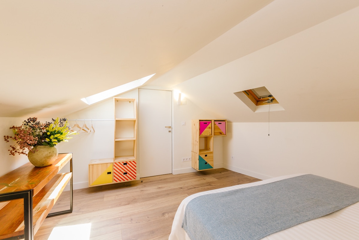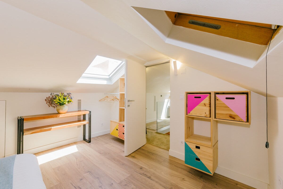 Even though flat is just a couple of blocks away from all the nightlife (and noise) of Bairro Alto, it was really quiet, so you get the best of both. Everything was new and impeccable, from linen and towels to furniture. AC also worked perfectly, which is important if you visit in summer, considering the flat if is the attic of an old renewed building. You can tell they’ve thought about details for the guests, such as appropriate places to hang and store clothes, positioning of sockets, etc. The only thing you have to keep in mind is the height of the ceiling. The middle section (highest) is just a few centimetres higher than 175cm, so you always have to duck when circulating around the flat as not to hit your head.