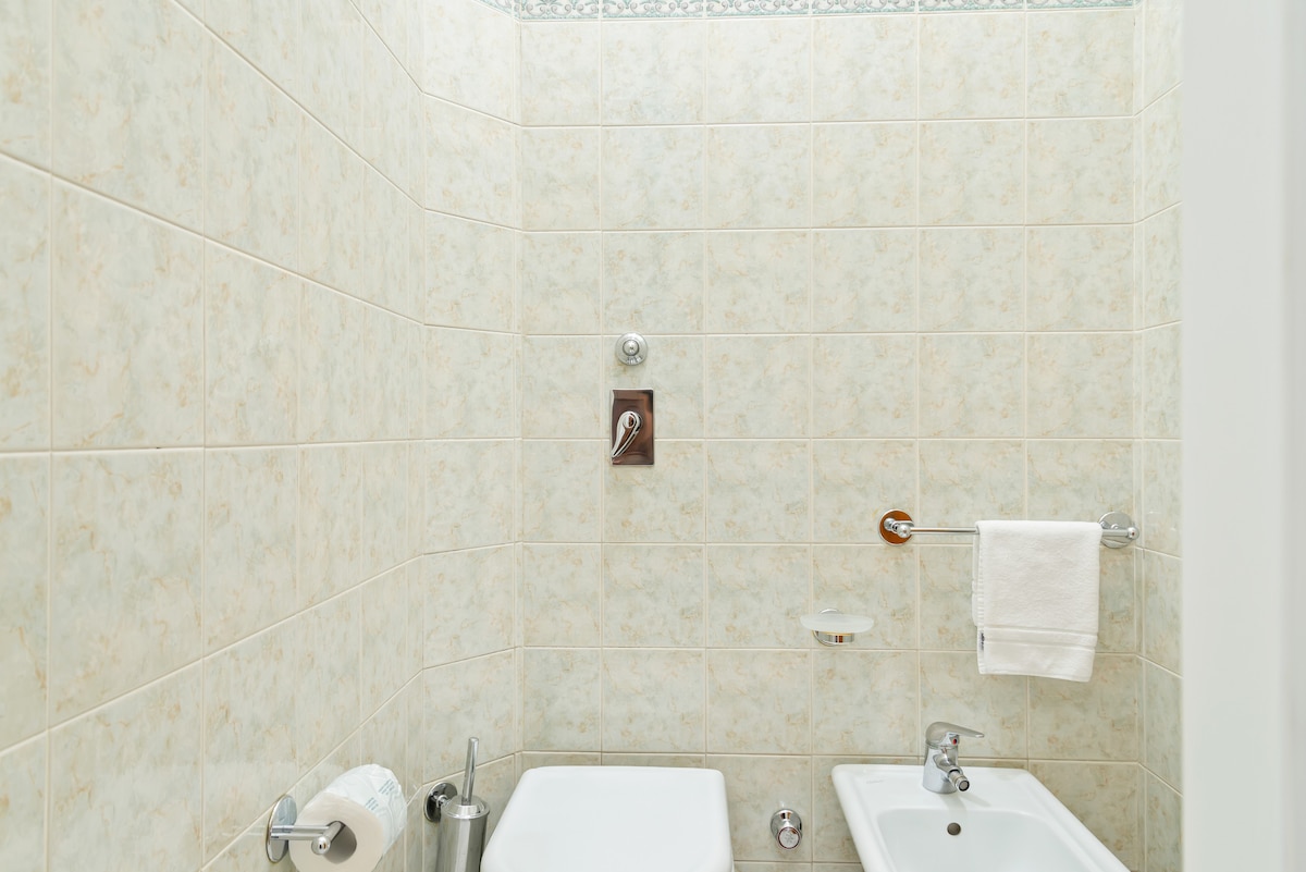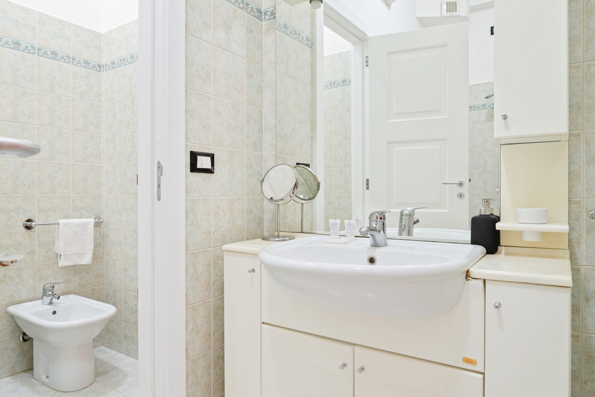 - BATHROOM with bathtub with shower, sink, bidet and WC.