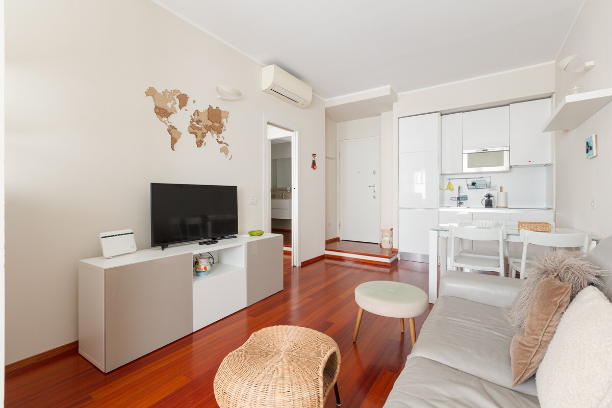 Cozy apartment with 45m2 balcony, able to accommodate up to 2 people, located on the fifth floor of a building in the Bullona area equipped with a lift. The property is located in a strategic area, a few minutes walk from the “Gerusalemme” and “Domodossola” metro stops (M5 – Lilla line) and from City Life, the largest pedestrian area in Milan.