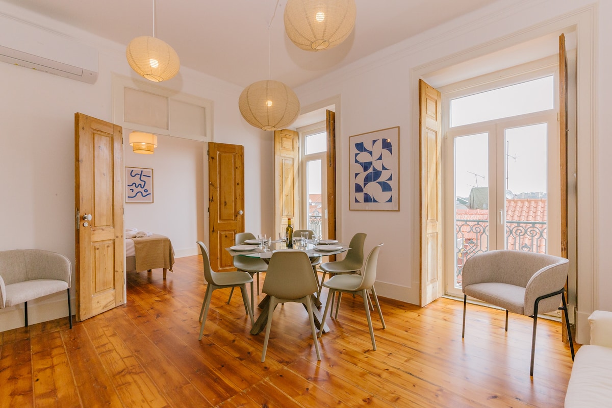 Welcome to our spacious and stylish four-bedroom apartment in Lisbon's vibrant Bairro Alto neighbourhood. Breathtaking views of the iconic Lisbon Castle and the tranquil river provide an unforgettable backdrop to your stay.With room for up to 7 guests, this charming retreat offers modern comfort and historic charm.