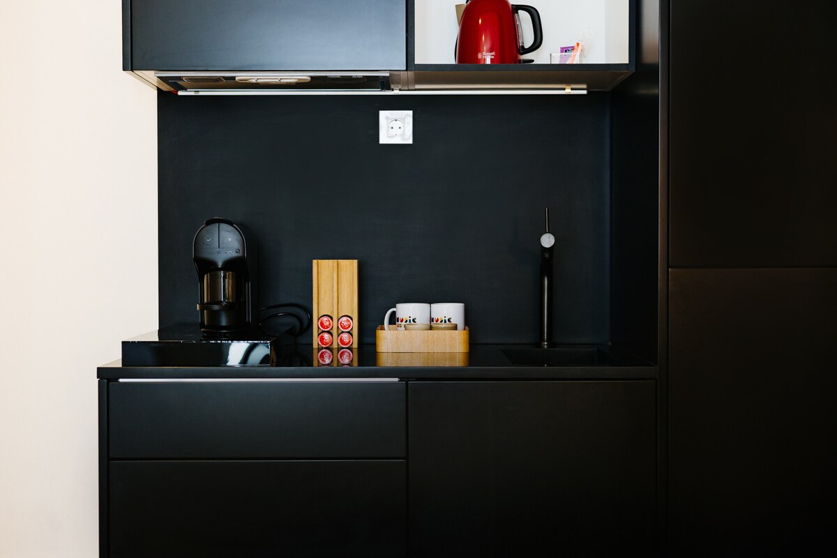 Basically very good accommodation. It was quite clean in the apartment, but it showed some signs of wear and tear (gravel on the walls, dirt stains on the countertops). We were worried about the noise but in the end we had no problems in this regard. This whole tour is well on foot or by public transit from the accommodation. There's a fridge, coffee maker, and a stove. There is a small kitchenette area, but there was nothing provided for cooking (no utensils, bowls, plates or pans). The bathroom was big enough to be two easily. The room cleaning service was also a big bonus!