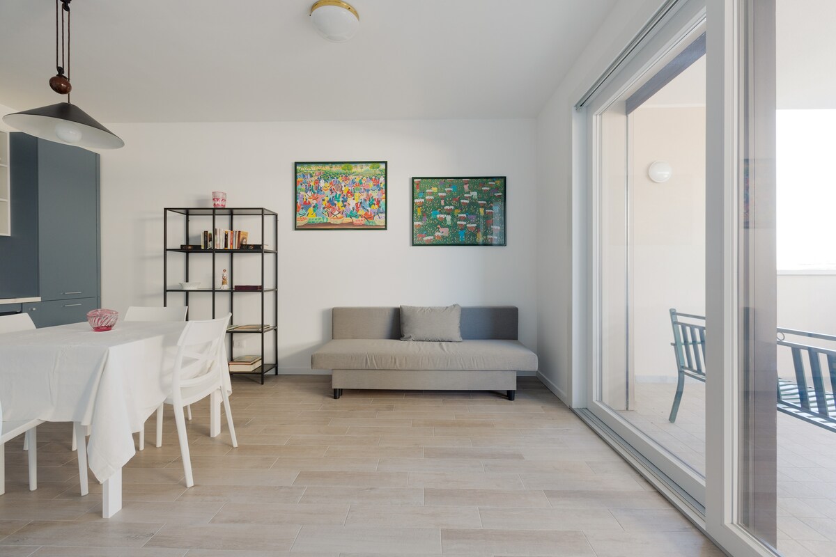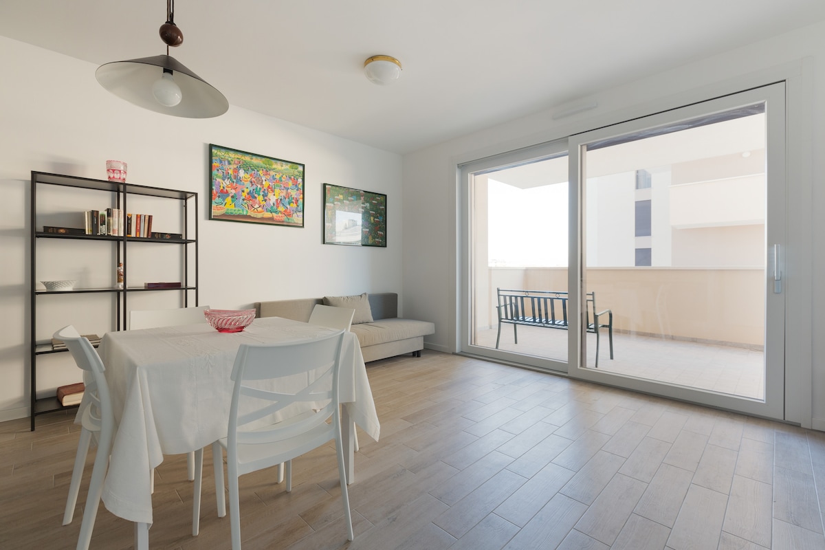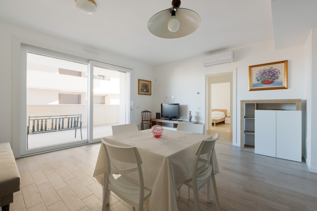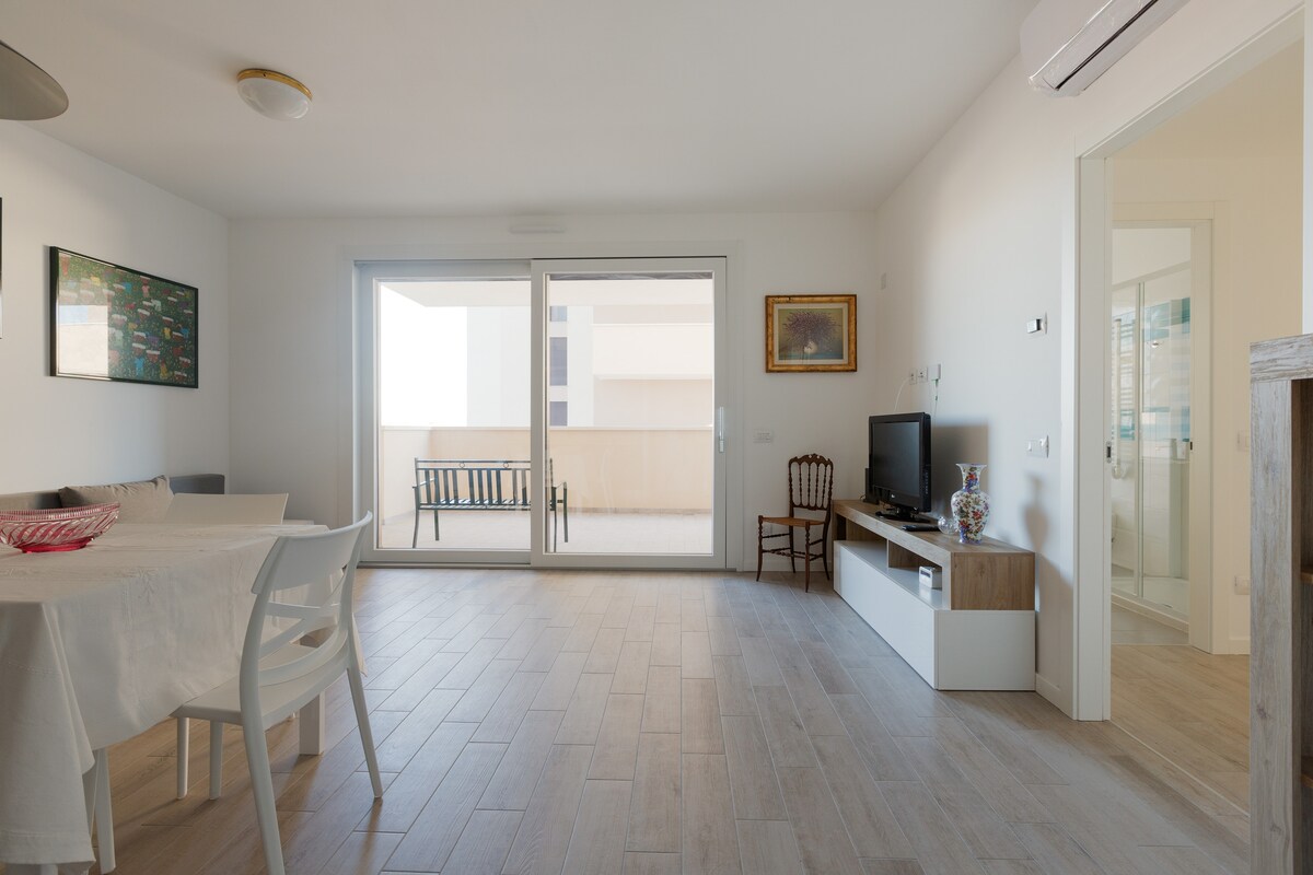 The internal space is composed as follows:- LIVING ROOM with sofa, TV, table with chairs, access to the large balcony;