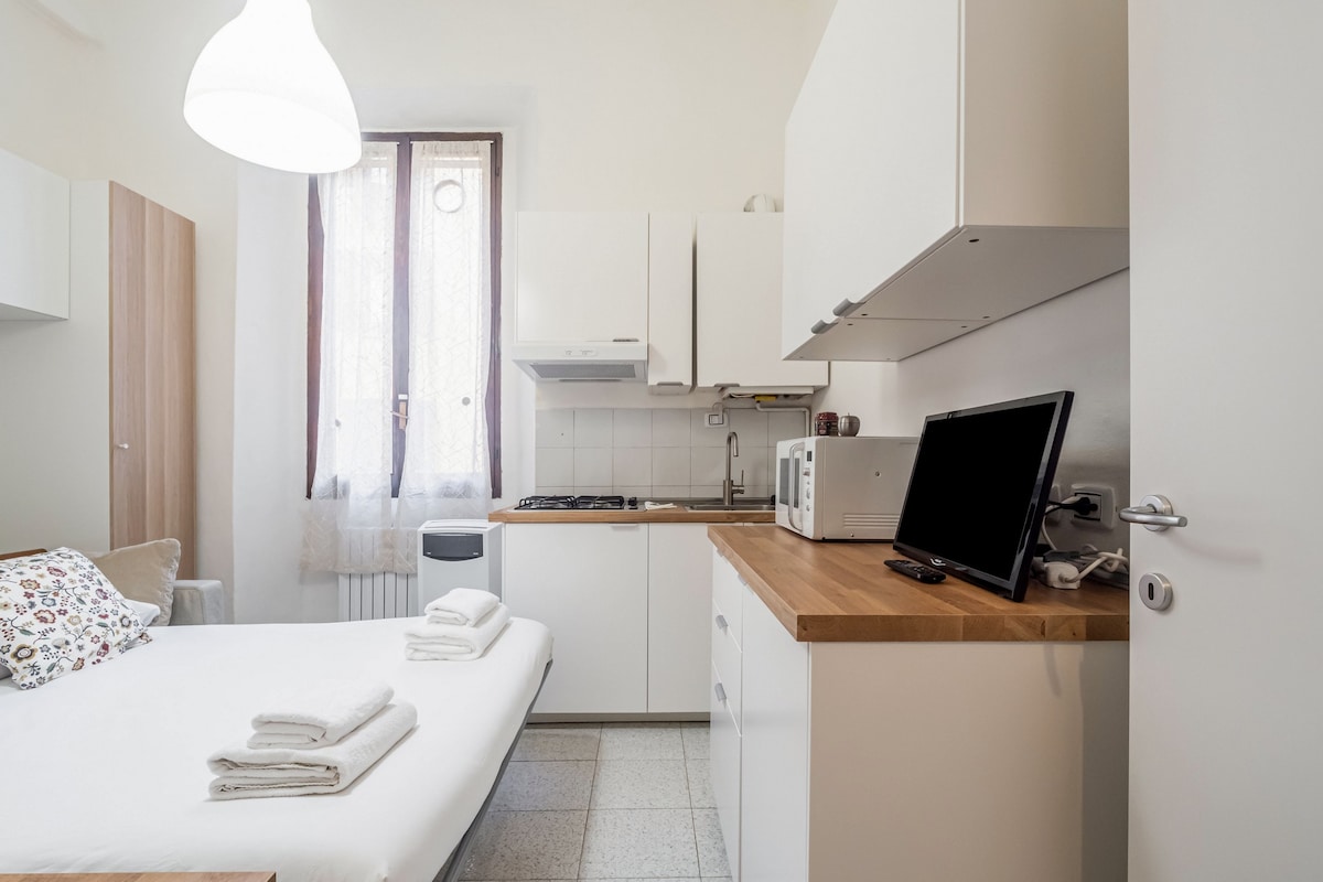 We went to Milan for 4 days with a friend. Very comfortable accommodation. Really very small, but everything you need is from shampoo and soap to an iron. The area is probably the best one to choose for two female students - relatively quiet, but there is a place to walk and feel safe. All the attractions are within 30 minutes by transport, which is also very convenient.