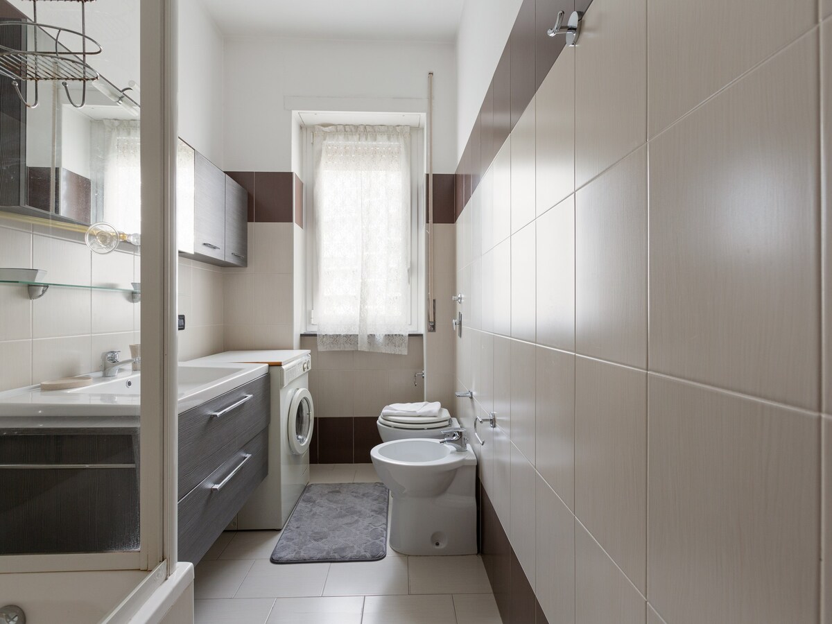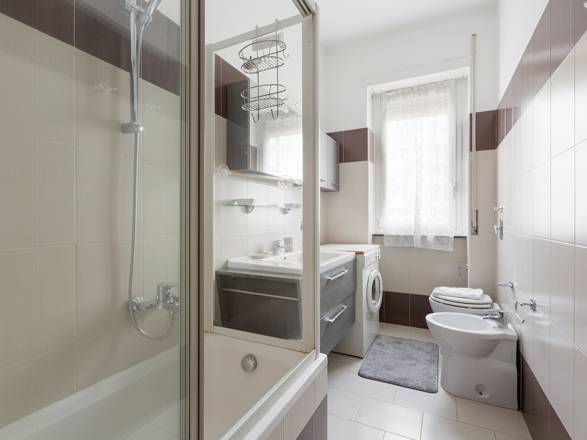 - BATHROOM with bathtub with shower, sink, bidet, toilet and washing machine.
