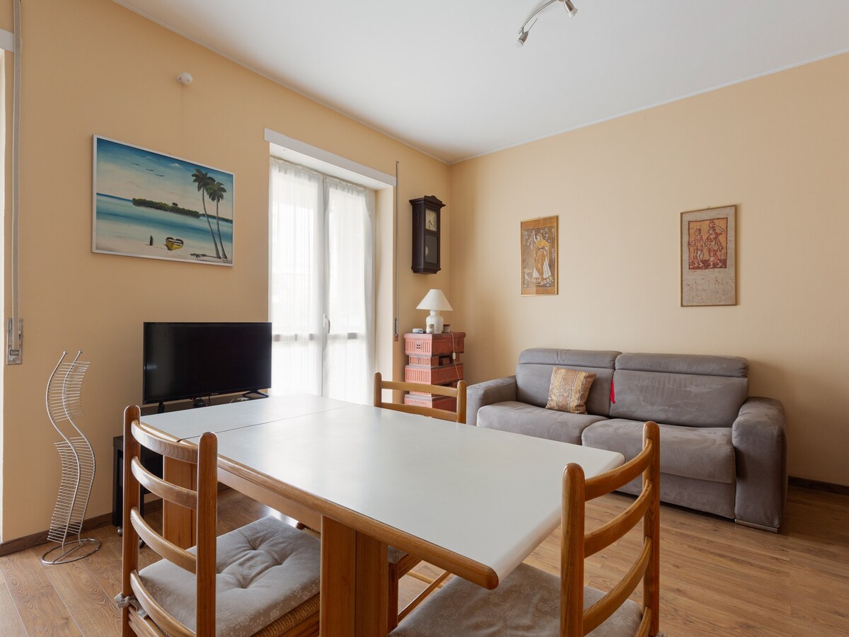 - LIVING ROOM with kitchenette (gas hob, fridge, freezer, oven, kettle, moka, dishwasher, kitchen utensils and wine glasses), double sofa bed, dining table, TV and access to the balcony;