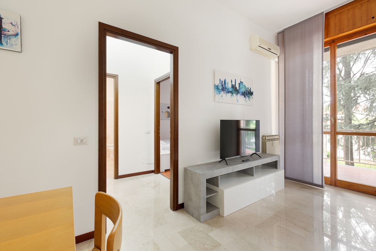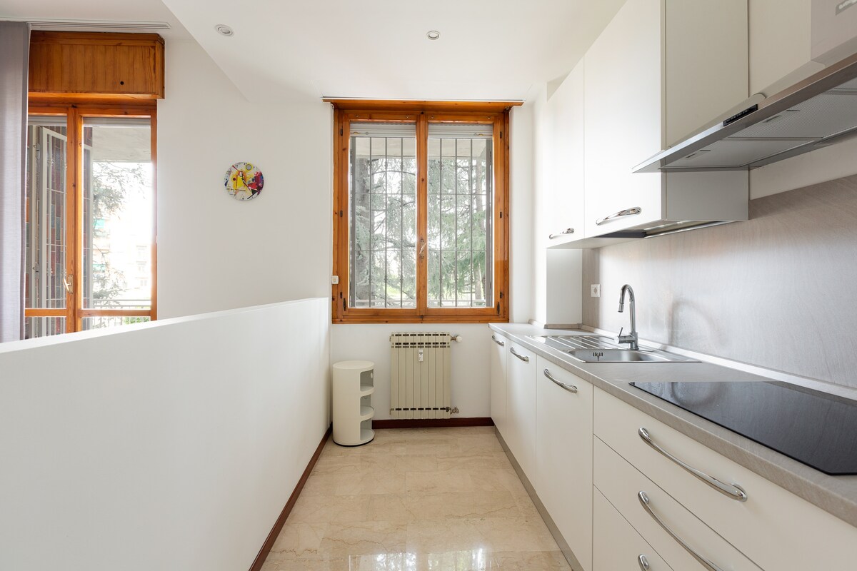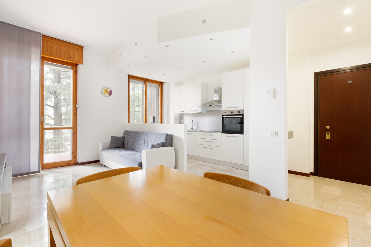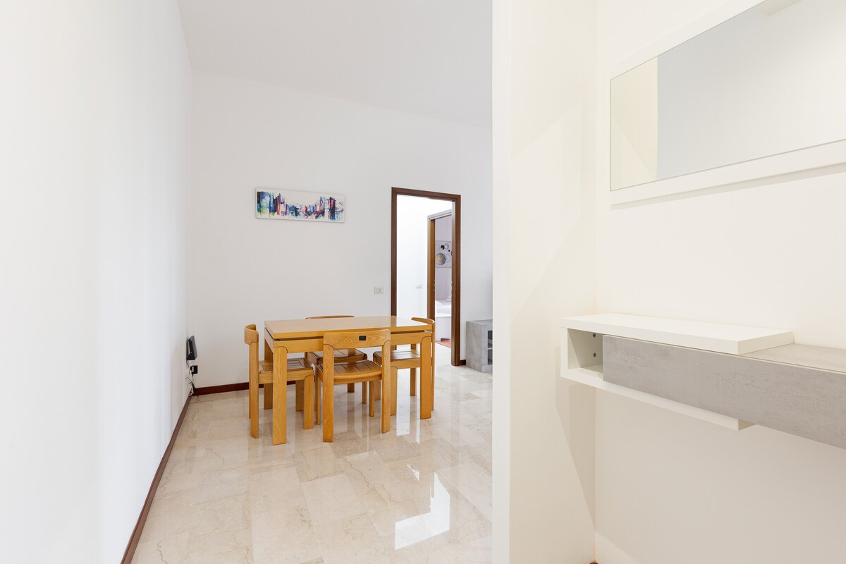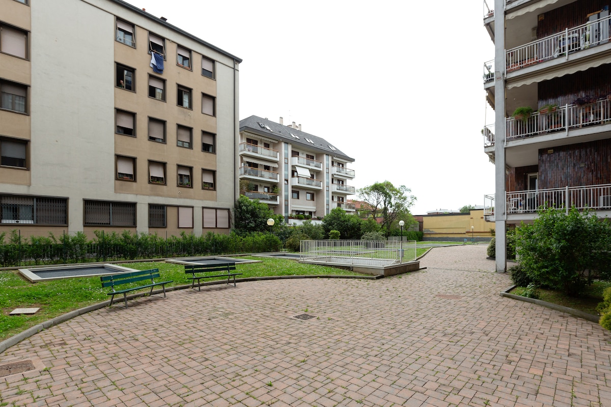 Bright and welcoming 60 mq apartment with terrace equipped with outdoor furniture and able to accommodate up to 3 people! The accommodation is located on the first floor of a building with lift located in a residential area of the Precotto district of Milan and overlooks the shared garden. The property is located in a strategic position to reach Monza and the center of Milan (via underground or suburban trains from Greco Pirelli).