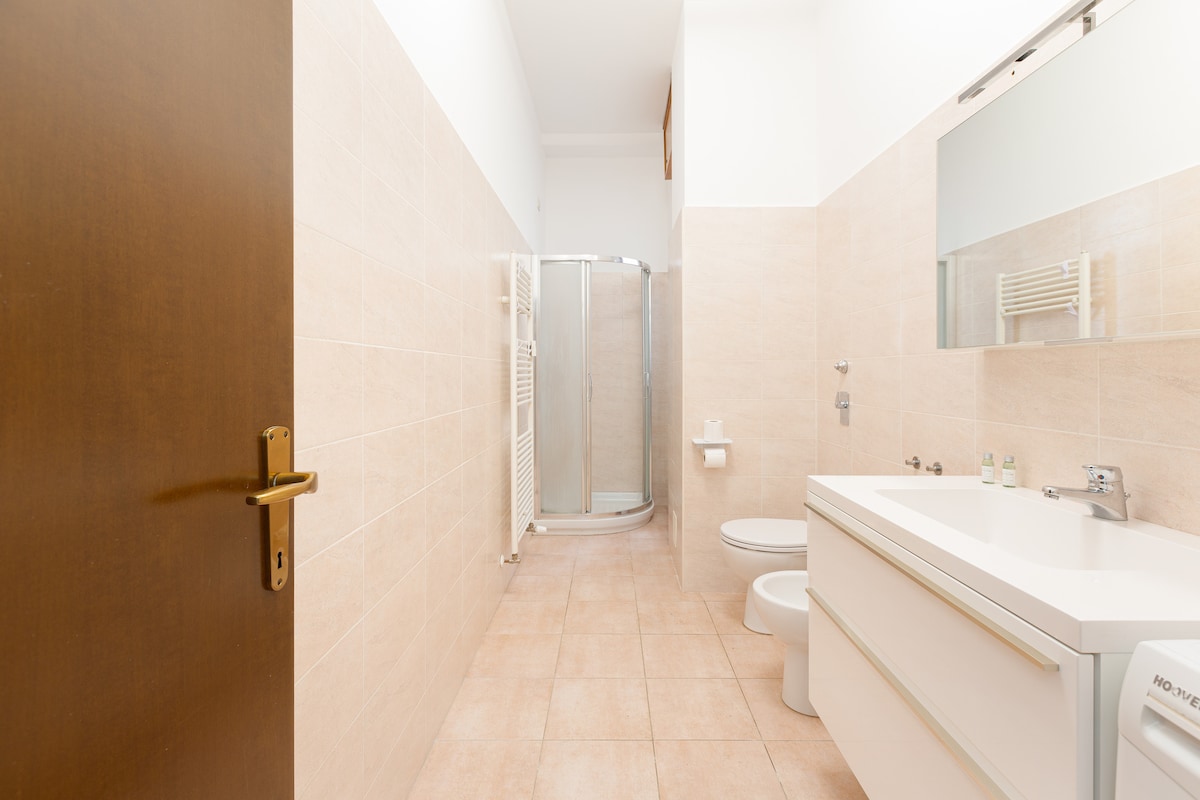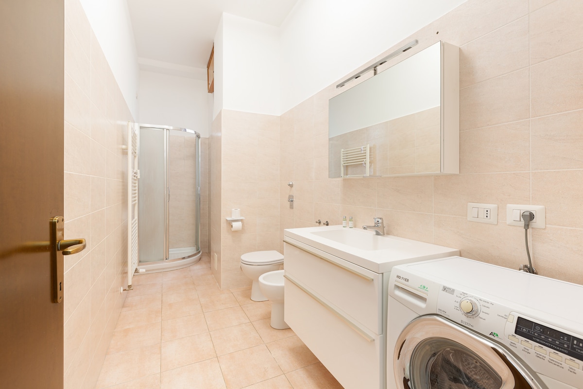 -BATHROOM II with bidet and shower cubicle and washing machine.