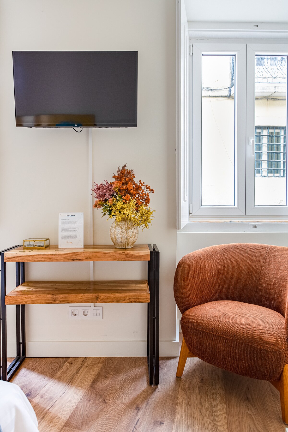 Located next to the famous Conservatorio Nacional, a music school founded in 1837 inspired the design of the rooms to translate the music and Lisbon mood through its textures, colours, and materials.