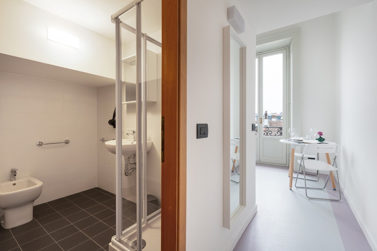 To ensure the security of your personal data, 7 days before your arrival you will receive instructions to register your documents via our Guest Portal. We need such procedure to verify your ids and docs and in order to send info to the police service "Alloggiati Web" which is Italian procedure to host guest in italy. You can find all the information on the official website alloggiatiweb.poliziadistato Switching on and off air conditioning and heating is subject to compliance with current Italian legislation (DPR 16/04/2013 n.74, DM 383 - 6/10/2022). Summer: the average air temperature must not get below 26°C (78,8 °F) for all kinds of buildings Winter: the weighted average of the air temperatures must not exceed 19°C (66,2 °F). Time and period of operation depend on the climatic zone defined by the standard. Milano Climatic Zone E: 14 hours a day from October 15th to April 15th. There are 5 steps to climb at the entrance to the building. -The washer / dryer room is shared with the other guests and is located on floor-1. It is paid and it works every day from 8AM till 7PM KITCHEN CORNER VERY SMALL: WE SUGGEST YOU TO USE IT ONLY FOR BREAKFAST PAY ATTENTION: CHANCE OF NOISES FROM OUTSIDE FROM EARLY MORNING DUE TO HEAVY TRAFFIC IN THE ROAD SHOWER BOX SMALL SIZE. shower cubicle size 65cmx65cm; from shower tray to ceiling height 2.20m; in the sink area - floor mirror height 1,75m Internal staircase to reach the upper level The 2 levels are not acoustically isolated from each other and there are no doors separating them The accommodation is not recommended for those looking for a home "to live in" or for those who intend to use the kitchenette regularly to prepare lavish lunches or dinners. It is a smart/budget accommodation, to be used mainly as a support for the night In case of non-agreed use of extra linen, € 15 will be charged for each linen kit used. - For late check-in, the following supplement is required: * after 9.30 pm and until 11 pm a supplement of 25 euros is required. Silence from 22.00 to 8.00. PLEASE NOTE: It is mandatory to sign a short-term rental contract which involves administrative costs of between €50 and €150: the guest will be informed of these costs when the contract is signed. IT IS MANDATORY TO BE IN POSSESSION OF AN ITALIAN TAX CODE
