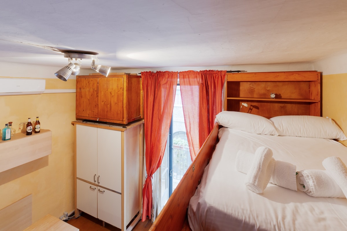 - LIVING/SLEEPING AREA OVERLIVED with KITCHENETTE (gas hob, microwave oven, small refrigerator, mocha coffee maker and other cooking utensils), double sofa bed, single bed (on the lofted area), mirror, table with chairs, TV, split A/C and access to balcony;