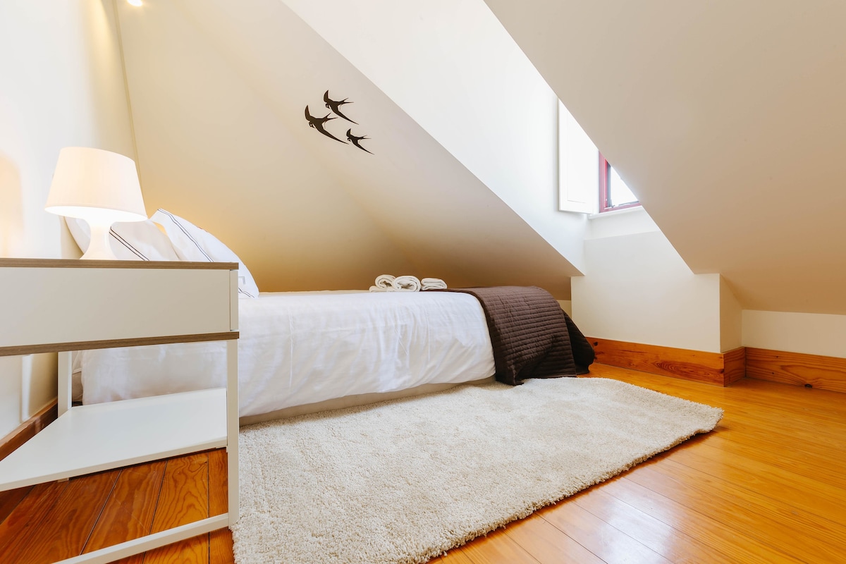 The apartment is 25m2 and has 2 floors.The apartment is 25m2 and has 2 floors. On the first floor there is a living/dining room with a single sofa, a fully equipped kitchenette, a private bathroom with shower, free Wi-Fi internet and cable TV. On the top floor there is a mezzanine bedroom with 2 beds that can be made as single beds or double beds. The apartment has big windows facing the typical Largo da Achada, and a lot of light.