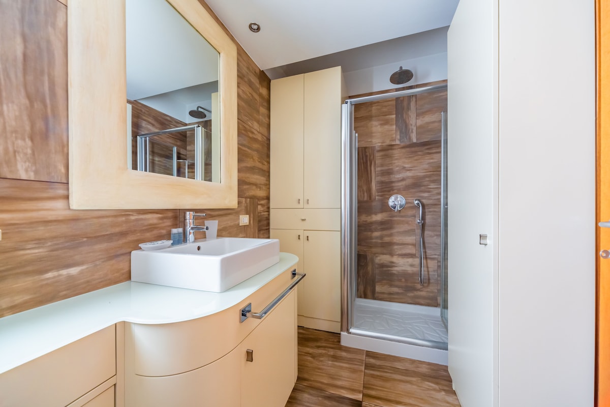 - BATHROOM with shower, washing machine, washbasin, bidet and WC;
