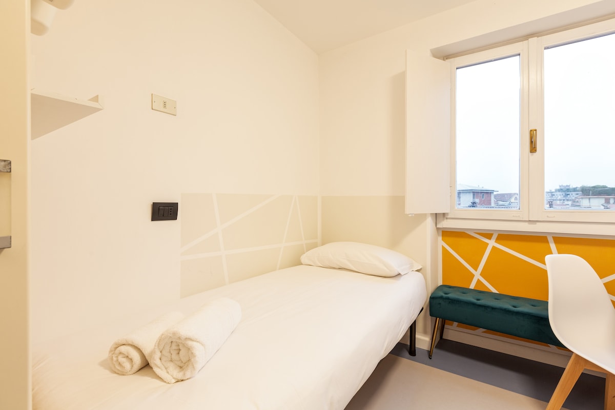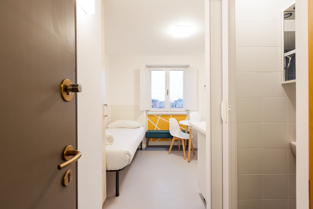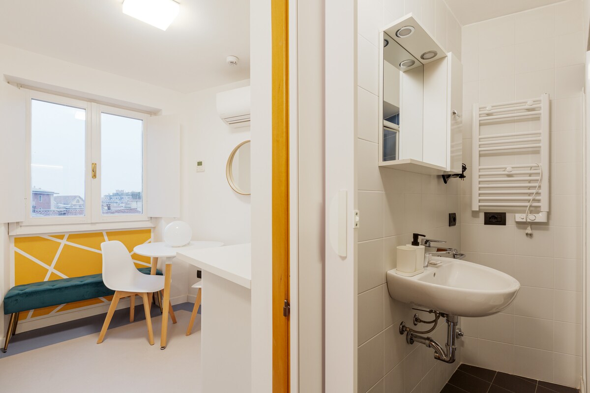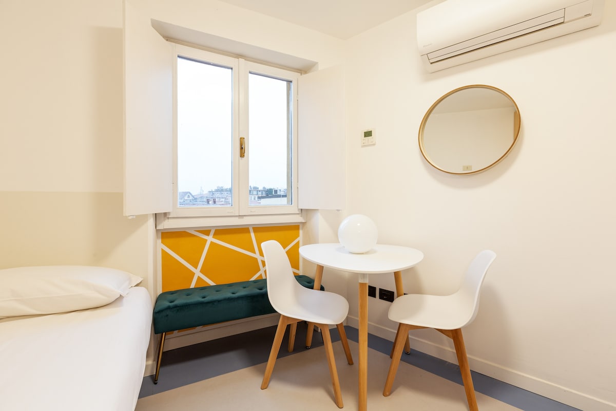 Switching on and off air conditioning and heating is subject to compliance with current Italian legislation (DPR 16/04/2013 n.74, DM 383 - 6/10/2022). Summer: the average air temperature must not get below 26°C (78,8 °F) for all kinds of buildings Winter: the weighted average of the air temperatures must not exceed 19°C (66,2 °F). Time and period of operation depend on the climatic zone defined by the standard. Milano Climatic Zone E: 14 hours a day from October 15th to April 15th. There are 5 steps to climb at the entrance to the building. -The washer / dryer room is shared with the other guests and is located on floor-1. It is paid and it works every day from 8AM till 7PM KITCHEN CORNER VERY SMALL: WE SUGGEST YOU TO USE IT ONLY FOR BREAKFAST PAY ATTENTION: CHANCE OF NOISES FROM OUTSIDE FROM EARLY MORNING DUE TO HEAVY TRAFFIC IN THE ROAD SHOWER BOX SMALL SIZE. shower cubicle size 65cmx65cm; from shower tray to ceiling height 2.20m; in the sink area - floor mirror height 1,75m The accommodation is not recommended for those looking for a home "to live in" or for those who intend to use the kitchenette regularly to prepare lavish lunches or dinners. It is a smart/budget accommodation, to be used mainly as a support for the night In case of non-agreed use of extra linen, € 15 will be charged for each linen kit used. - For late check-in, the following supplement is required: * after 9.30 pm and until 11 pm a supplement of 25 euros is required. Silence from 22.00 to 8.00. PLEASE NOTE: It is mandatory to sign a short-term rental contract which involves administrative costs of between €50 and €150: the guest will be informed of these costs when the contract is signed. IT IS MANDATORY TO BE IN POSSESSION OF AN ITALIAN TAX CODE ATTENTION: the lift in the building goes up to the fourth floor. To reach the fifth floor you have to walk up one floor.