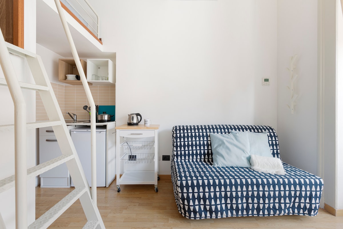 Switching on and off air conditioning and heating is subject to compliance with current Italian legislation (DPR 16/04/2013 n.74, DM 383 - 6/10/2022). Summer: the average air temperature must not get below 26°C (78,8 °F) for all kinds of buildings Winter: the weighted average of the air temperatures must not exceed 19°C (66,2 °F). Time and period of operation depend on the climatic zone defined by the standard. Milano Climatic Zone E: 14 hours a day from October 15th to April 15th. There are 5 steps to climb at the entrance to the building. -The washer / dryer room is shared with the other guests and is located on floor-1. It is paid and it works every day from 8AM till 7PM KITCHEN CORNER VERY SMALL: WE SUGGEST YOU TO USE IT ONLY FOR BREAKFAST PAY ATTENTION: CHANCE OF NOISES FROM OUTSIDE FROM EARLY MORNING DUE TO HEAVY TRAFFIC IN THE ROAD SHOWER BOX SMALL SIZE. shower cubicle size 65cmx65cm; from shower tray to ceiling height 2.20m; in the sink area - floor mirror height 1,75m Internal staircase to reach the upper level The 2 levels are not acoustically isolated from each other and there are no doors separating them The accommodation is not recommended for those looking for a home "to live in" or for those who intend to use the kitchenette regularly to prepare lavish lunches or dinners. It is a smart/budget accommodation, to be used mainly as a support for the night In case of non-agreed use of extra linen, € 15 will be charged for each linen kit used. - For late check-in, the following supplement is required: * after 9.30 pm and until 11 pm a supplement of 25 euros is required. Silence from 22.00 to 8.00. PLEASE NOTE: It is mandatory to sign a short-term rental contract which involves administrative costs of between €50 and €150: the guest will be informed of these costs when the contract is signed. IT IS MANDATORY TO BE IN POSSESSION OF AN ITALIAN TAX CODE