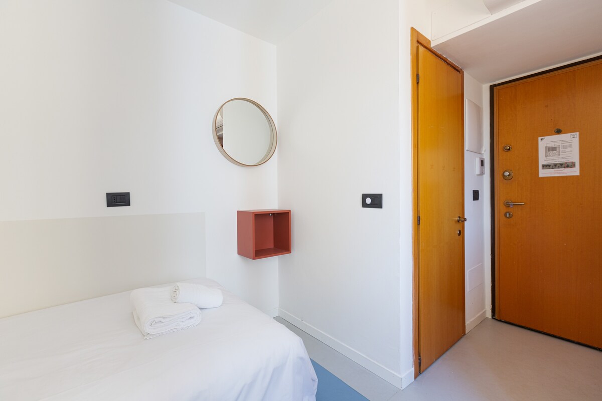Switching on and off air conditioning and heating is subject to compliance with current Italian legislation (DPR 16/04/2013 n.74, DM 383 - 6/10/2022). Summer: the average air temperature must not get below 26°C (78,8 °F) for all kinds of buildings Winter: the weighted average of the air temperatures must not exceed 19°C (66,2 °F). Time and period of operation depend on the climatic zone defined by the standard. Milano Climatic Zone E: 14 hours a day from October 15th to April 15th. There are 5 steps to climb at the entrance to the building. Please note: you need to go up a flight of stairs from the lift to the accommodation. -The washer / dryer room is shared with the other guests and is located on floor-1. It is paid and it works every day from 8AM till 7PM KITCHEN CORNER VERY SMALL: WE SUGGEST YOU TO USE IT ONLY FOR BREAKFAST PAY ATTENTION: CHANCE OF NOISES FROM OUTSIDE FROM EARLY MORNING DUE TO HEAVY TRAFFIC IN THE ROAD The accommodation is not recommended for those looking for a home "to live in" or for those who intend to use the kitchenette regularly to prepare lavish lunches or dinners. It is a smart/budget accommodation, to be used mainly as a support for the night In case of non-agreed use of extra linen, € 15 will be charged for each linen kit used. - For late check-in, the following supplement is required: * after 9.30 pm and until 11 pm a supplement of 25 euros is required. Silence from 22.00 to 8.00. PLEASE NOTE: It is mandatory to sign a short-term rental contract which involves administrative costs of between €50 and €150: the guest will be informed of these costs when the contract is signed. IT IS MANDATORY TO BE IN POSSESSION OF AN ITALIAN TAX CODE ATTENTION: the lift in the building goes up to the fourth floor. To reach the fifth floor you have to walk up one floor.