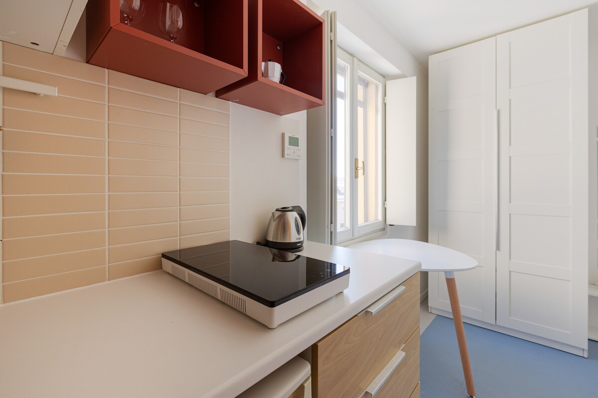Please note: there are paid washing machines and dryers in the building on the -1 floor shared with other guests. They are active every day from 8am to 7pm. There are 5 steps at the entrance before reaching the lift.