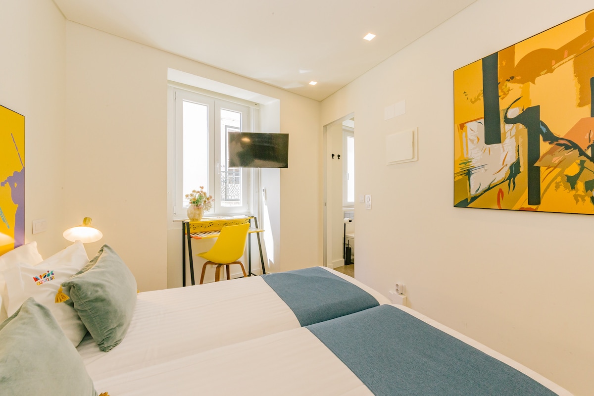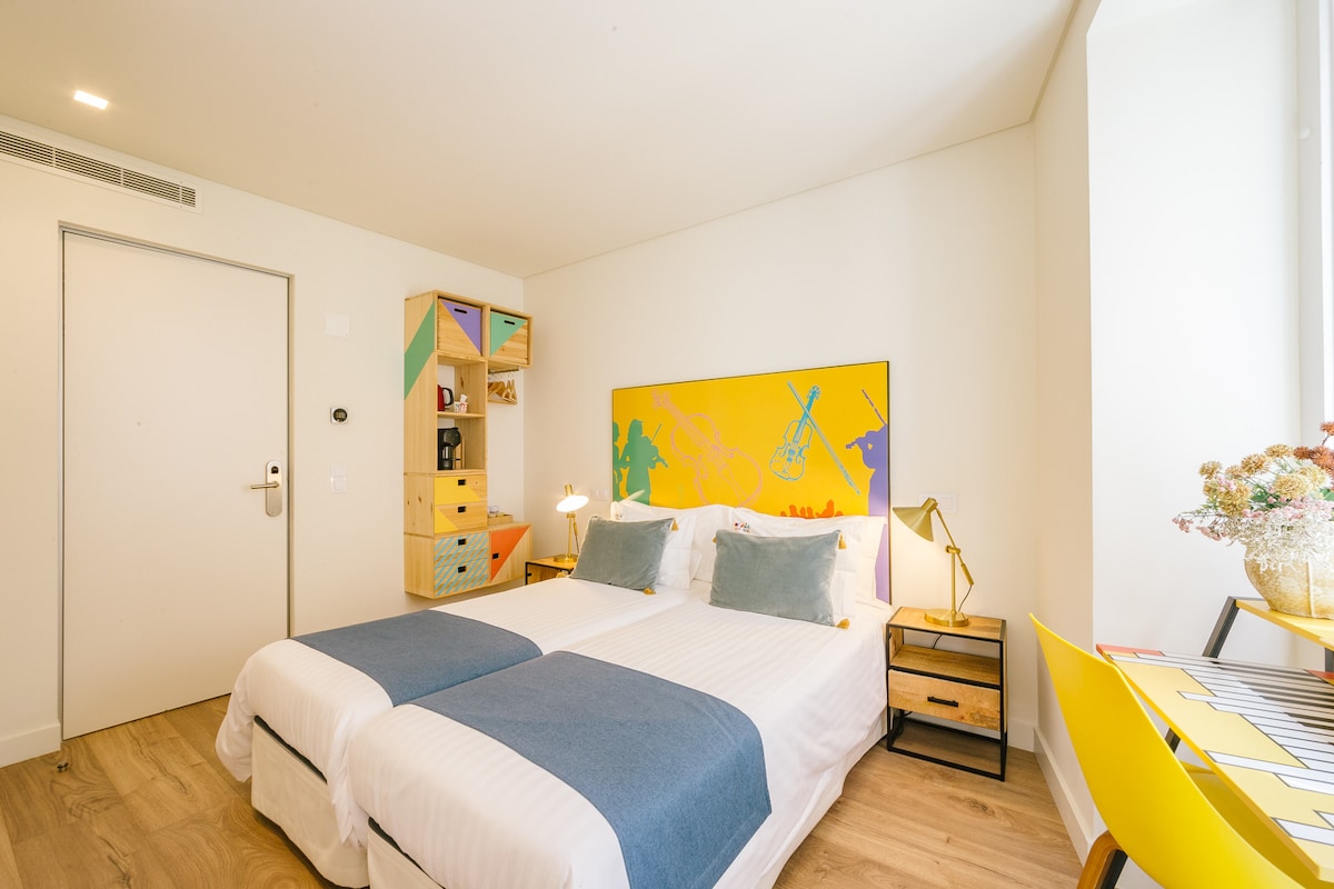Located next to the famous Conservatorio Nacional, a music school founded in 1837 inspired the design of the rooms to translate the music and Lisbon mood through its textures, colours, and materials.
