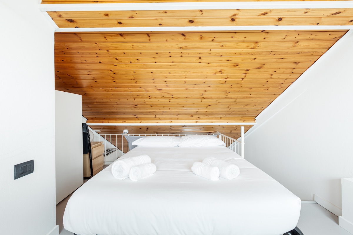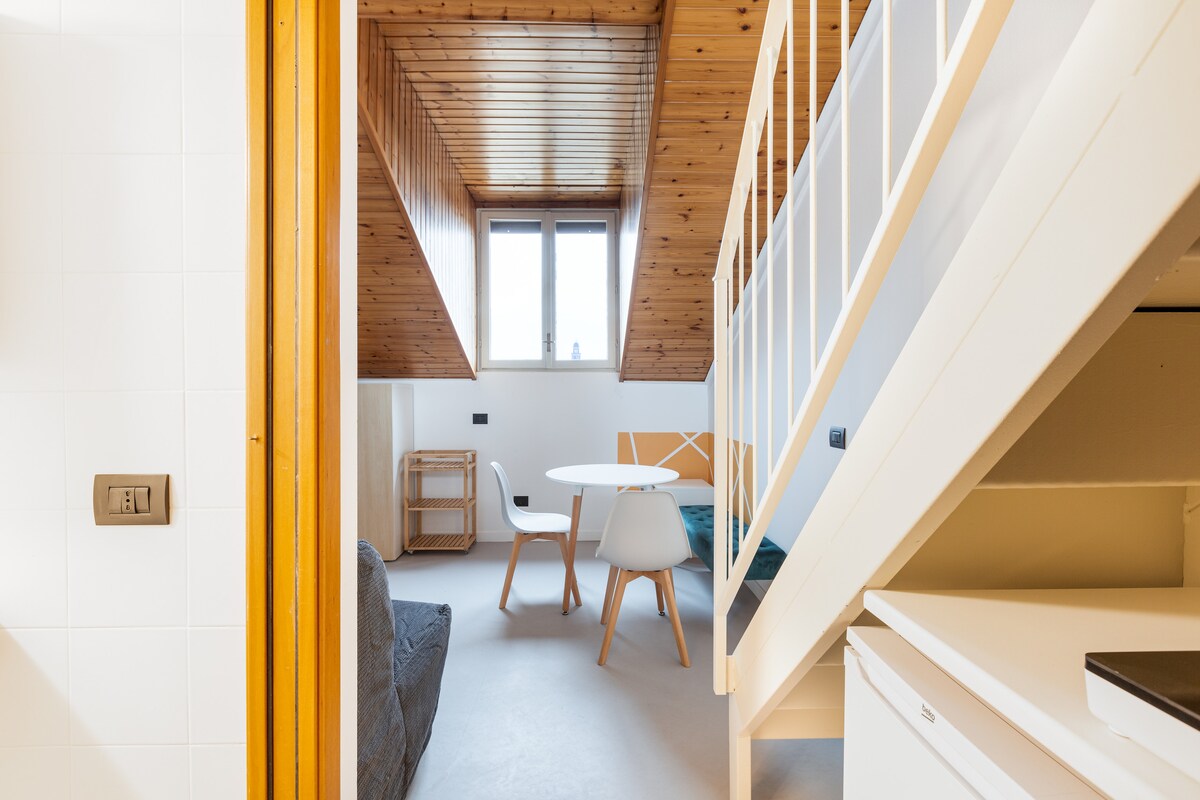 Apartment number 509 of approximately 25m2 is located on the fifth floor of an elegant Milanese building with concierge and a lift that reaches the fourth floor. The top floor must therefore necessarily be climb on foot. It has all the main comforts and is organized as follows:- LOWER LEVEL with relaxation area with sofa bed and small kitchenette with 2-burner hob, kettle, small fridge.