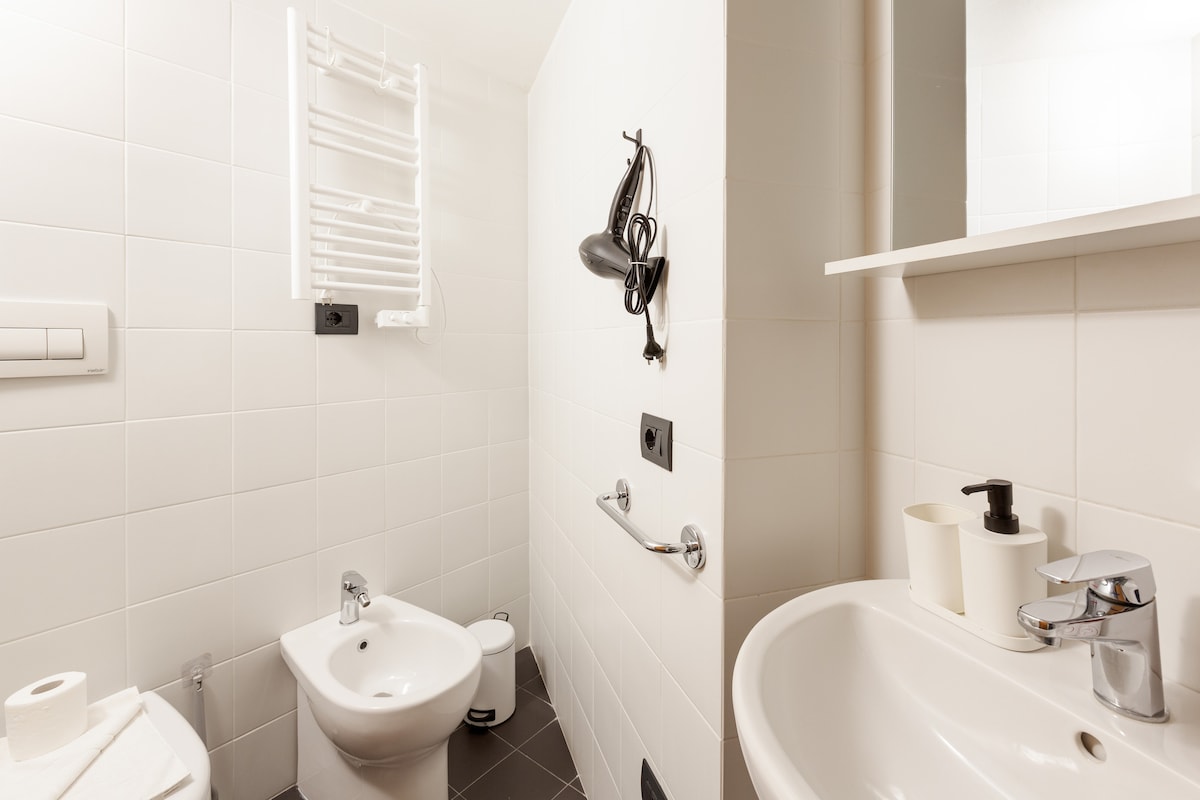 Switching on and off air conditioning and heating is subject to compliance with current Italian legislation (DPR 16/04/2013 n.74, DM 383 - 6/10/2022). Summer: the average air temperature must not get below 26°C (78,8 °F) for all kinds of buildings Winter: the weighted average of the air temperatures must not exceed 19°C (66,2 °F). Time and period of operation depend on the climatic zone defined by the standard. Milano Climatic Zone E: 14 hours a day from October 15th to April 15th. There are 5 steps to climb at the entrance to the building. -The washer / dryer room is shared with the other guests and is located on floor-1. It is paid and it works every day from 8AM till 7PM KITCHEN CORNER VERY SMALL: WE SUGGEST YOU TO USE IT ONLY FOR BREAKFAST PAY ATTENTION: CHANCE OF NOISES FROM OUTSIDE FROM EARLY MORNING DUE TO HEAVY TRAFFIC IN THE ROAD SHOWER BOX SMALL SIZE. shower cubicle size 65cmx65cm; from shower tray to ceiling height 2.20m; in the sink area - floor mirror height 1,75m The accommodation is not recommended for those looking for a home "to live in" or for those who intend to use the kitchenette regularly to prepare lavish lunches or dinners. It is a smart/budget accommodation, to be used mainly as a support for the night In case of non-agreed use of extra linen, € 15 will be charged for each linen kit used. - For late check-in, the following supplement is required: * after 9.30 pm and until 11 pm a supplement of 25 euros is required. Silence from 22.00 to 8.00. PLEASE NOTE: It is mandatory to sign a short-term rental contract which involves administrative costs of between €50 and €150: the guest will be informed of these costs when the contract is signed. IT IS MANDATORY TO BE IN POSSESSION OF AN ITALIAN TAX CODE ATTENTION: the lift in the building goes up to the fourth floor. To reach the fifth floor you have to walk up one floor.