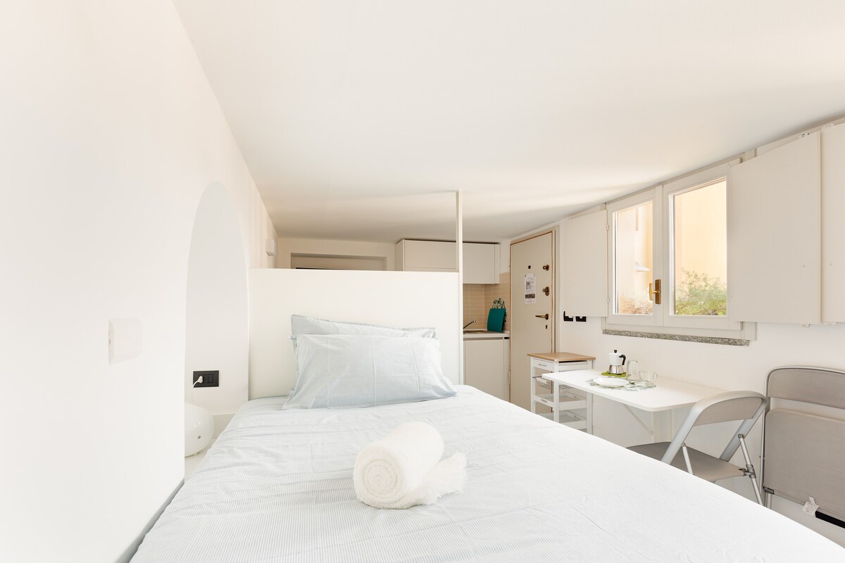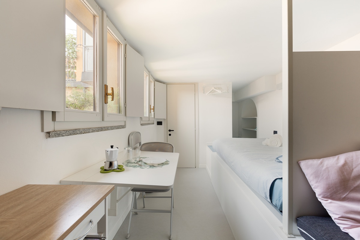 The studio apartment number 314 of approximately 20m2 is located on the third floor with lift of an elegant Milanese building with concierge. Please note: You will need to climb a flight of stairs from the lift to the accommodation.