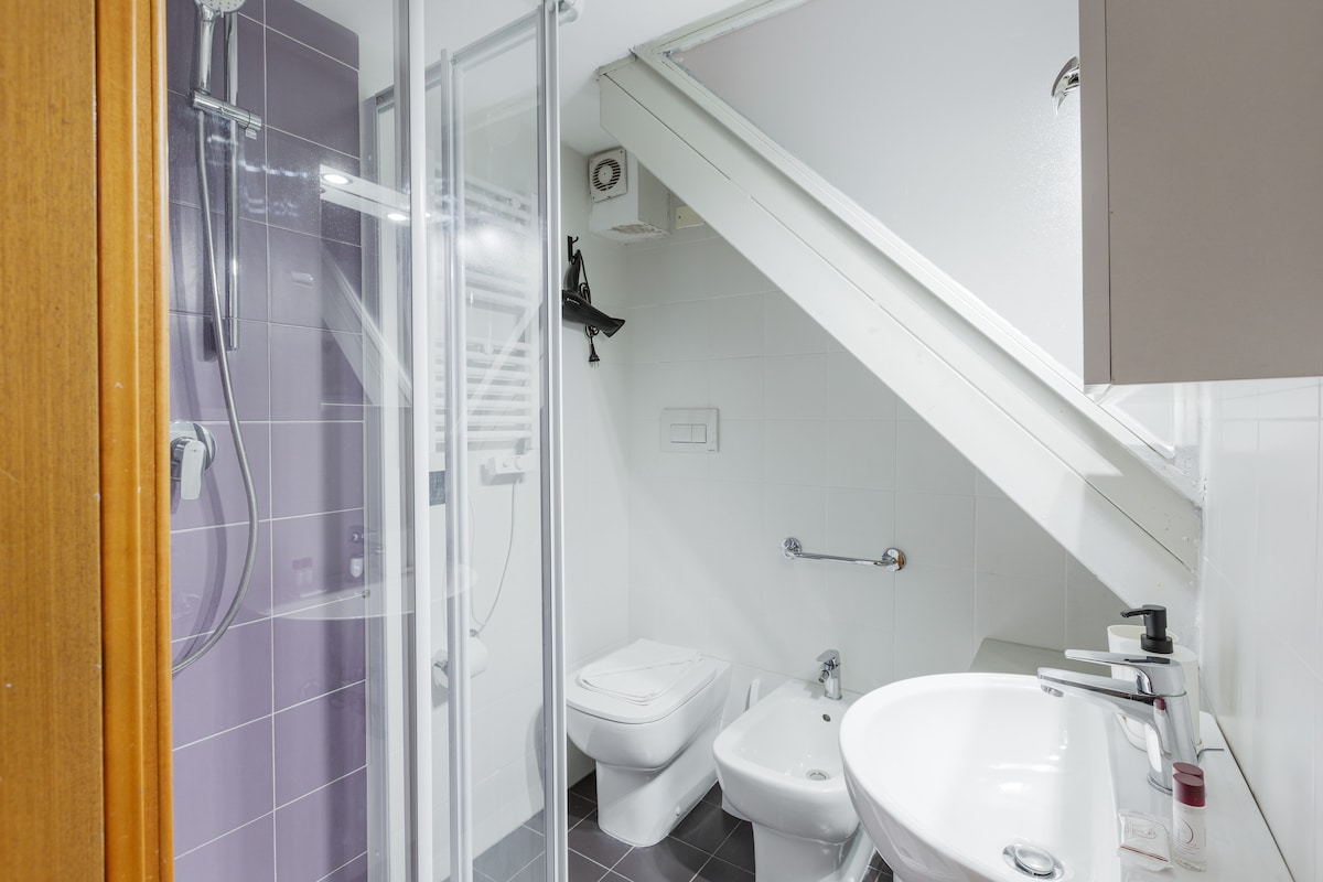 Switching on and off air conditioning and heating is subject to compliance with current Italian legislation (DPR 16/04/2013 n.74, DM 383 - 6/10/2022). Summer: the average air temperature must not get below 26°C (78,8 °F) for all kinds of buildings Winter: the weighted average of the air temperatures must not exceed 19°C (66,2 °F). Time and period of operation depend on the climatic zone defined by the standard. Milano Climatic Zone E: 14 hours a day from October 15th to April 15th. There are 5 steps to climb at the entrance to the building. Internal staircase to reach the upper level -The washer / dryer room is shared with the other guests and is located on floor-1. It is paid and it works every day from 8AM till 7PM KITCHEN CORNER VERY SMALL: WE SUGGEST YOU TO USE IT ONLY FOR BREAKFAST PAY ATTENTION: CHANCE OF NOISES FROM OUTSIDE FROM EARLY MORNING DUE TO HEAVY TRAFFIC IN THE ROAD SHOWER BOX SMALL SIZE. shower cubicle size 65cmx65cm; from shower tray to ceiling height 2.20m; in the sink area - floor mirror height 1,75m The accommodation is not recommended for those looking for a home "to live in" or for those who intend to use the kitchenette regularly to prepare lavish lunches or dinners. It is a smart/budget accommodation, to be used mainly as a support for the night In case of non-agreed use of extra linen, € 15 will be charged for each linen kit used. - For late check-in, the following supplement is required: * after 9.30 pm and until 11 pm a supplement of 25 euros is required. Silence from 22.00 to 8.00. PLEASE NOTE: It is mandatory to sign a short-term rental contract which involves administrative costs of between €50 and €150: the guest will be informed of these costs when the contract is signed. IT IS MANDATORY TO BE IN POSSESSION OF AN ITALIAN TAX CODE ATTENTION: the lift in the building goes up to the fourth floor. To reach the fifth floor you have to walk up one floor.