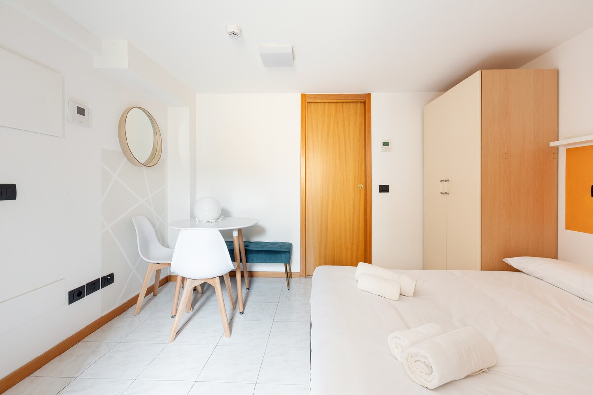 Switching on and off air conditioning and heating is subject to compliance with current Italian legislation (DPR 16/04/2013 n.74, DM 383 - 6/10/2022). Summer: the average air temperature must not get below 26°C (78,8 °F) for all kinds of buildings Winter: the weighted average of the air temperatures must not exceed 19°C (66,2 °F). Time and period of operation depend on the climatic zone defined by the standard. Milano Climatic Zone E: 14 hours a day from October 15th to April 15th. There are 5 steps to climb at the entrance to the building. -The washer / dryer room is shared with the other guests and is located on floor-1. It is paid and it works every day from 8AM till 7PM KITCHEN CORNER VERY SMALL: WE SUGGEST YOU TO USE IT ONLY FOR BREAKFAST PAY ATTENTION: CHANCE OF NOISES FROM OUTSIDE FROM EARLY MORNING DUE TO HEAVY TRAFFIC IN THE ROAD SHOWER BOX SMALL SIZE. shower cubicle size 65cmx65cm; from shower tray to ceiling height 2.20m; in the sink area - floor mirror height 1,75m The accommodation is not recommended for those looking for a home "to live in" or for those who intend to use the kitchenette regularly to prepare lavish lunches or dinners. It is a smart/budget accommodation, to be used mainly as a support for the night In case of non-agreed use of extra linen, € 15 will be charged for each linen kit used. - For late check-in, the following supplement is required: * after 9.30 pm and until 11 pm a supplement of 25 euros is required. Silence from 22.00 to 8.00. PLEASE NOTE: It is mandatory to sign a short-term rental contract which involves administrative costs of between €50 and €150: the guest will be informed of these costs when the contract is signed. IT IS MANDATORY TO BE IN POSSESSION OF AN ITALIAN TAX CODE ATTENTION: the lift in the building goes up to the fourth floor. To reach the fifth floor you have to walk up one floor.