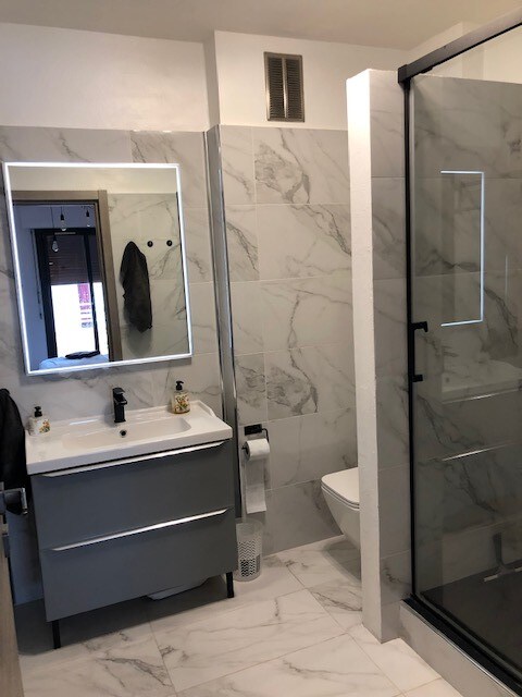 The second bedroom is very bright and it is right next to the 2nd full bathroom with toilet, shower and sink. It features queen size bed or 2 twin beds to choose from.