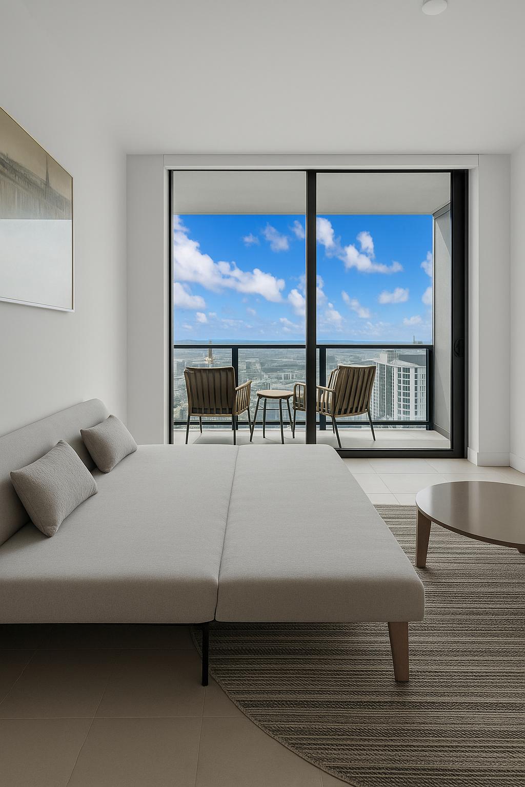Experience the vibrant energy of downtown Miami from this sleek, modern apartment on the 42nd floor, offering breathtaking panoramic views of the city skyline. Ideally located, you’ll be moments from Miami’s top attractions, dining, and shopping. The apartment features a comfortable king-size bed and a sofa bed for extra flexibility. Enjoy amenities like a city-view pool, fitness center, and 24/7 concierge service. Reserve today for a luxurious Miami escape!