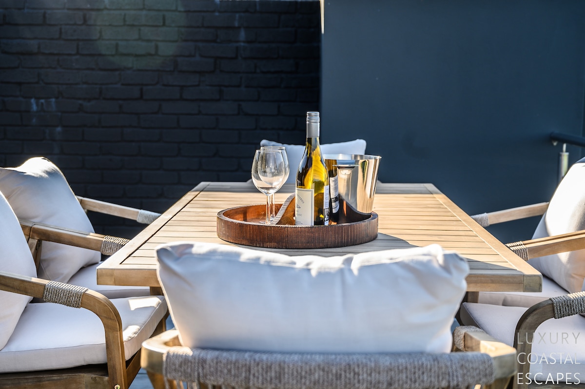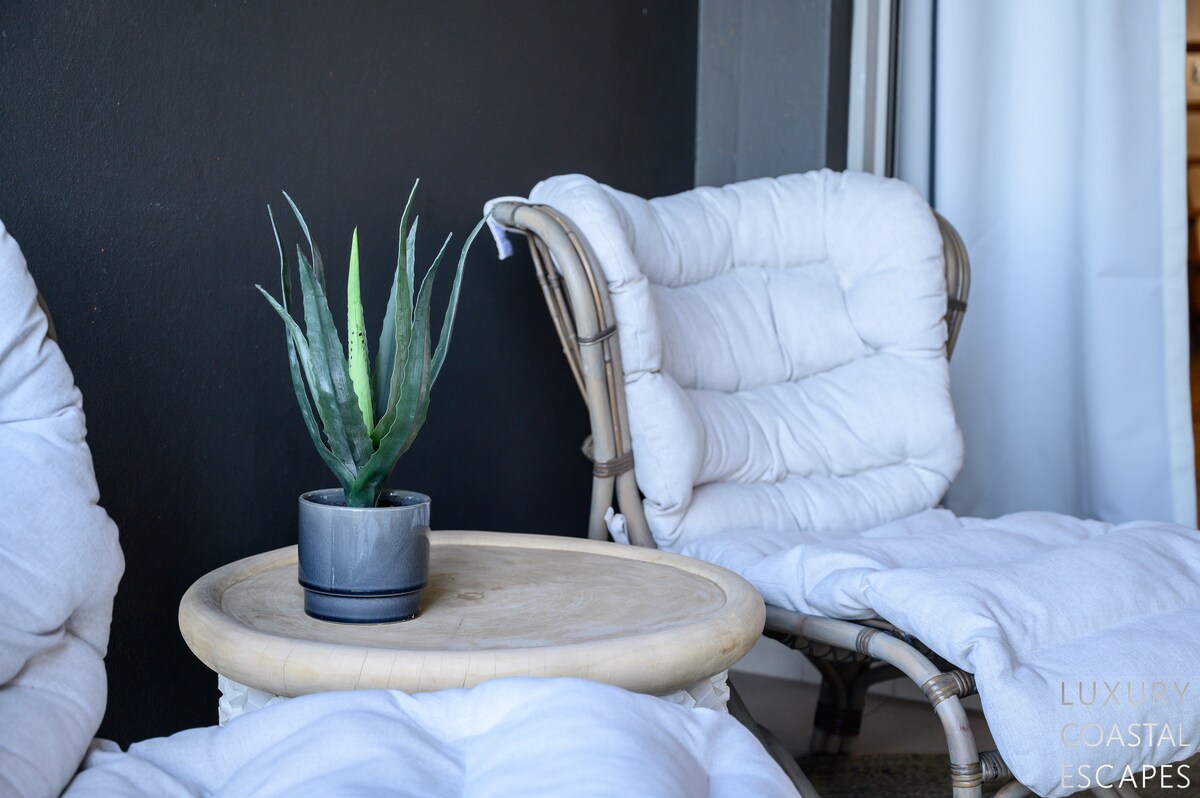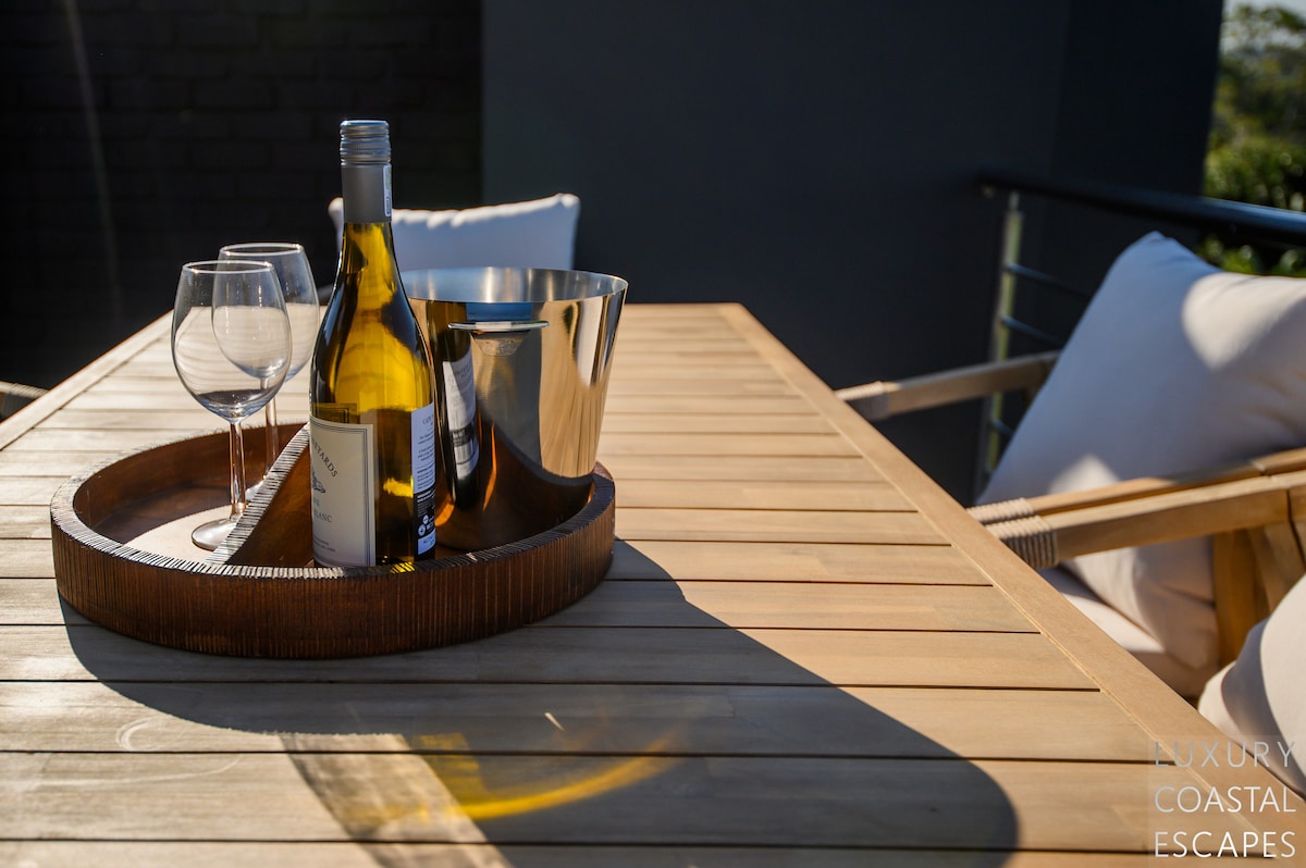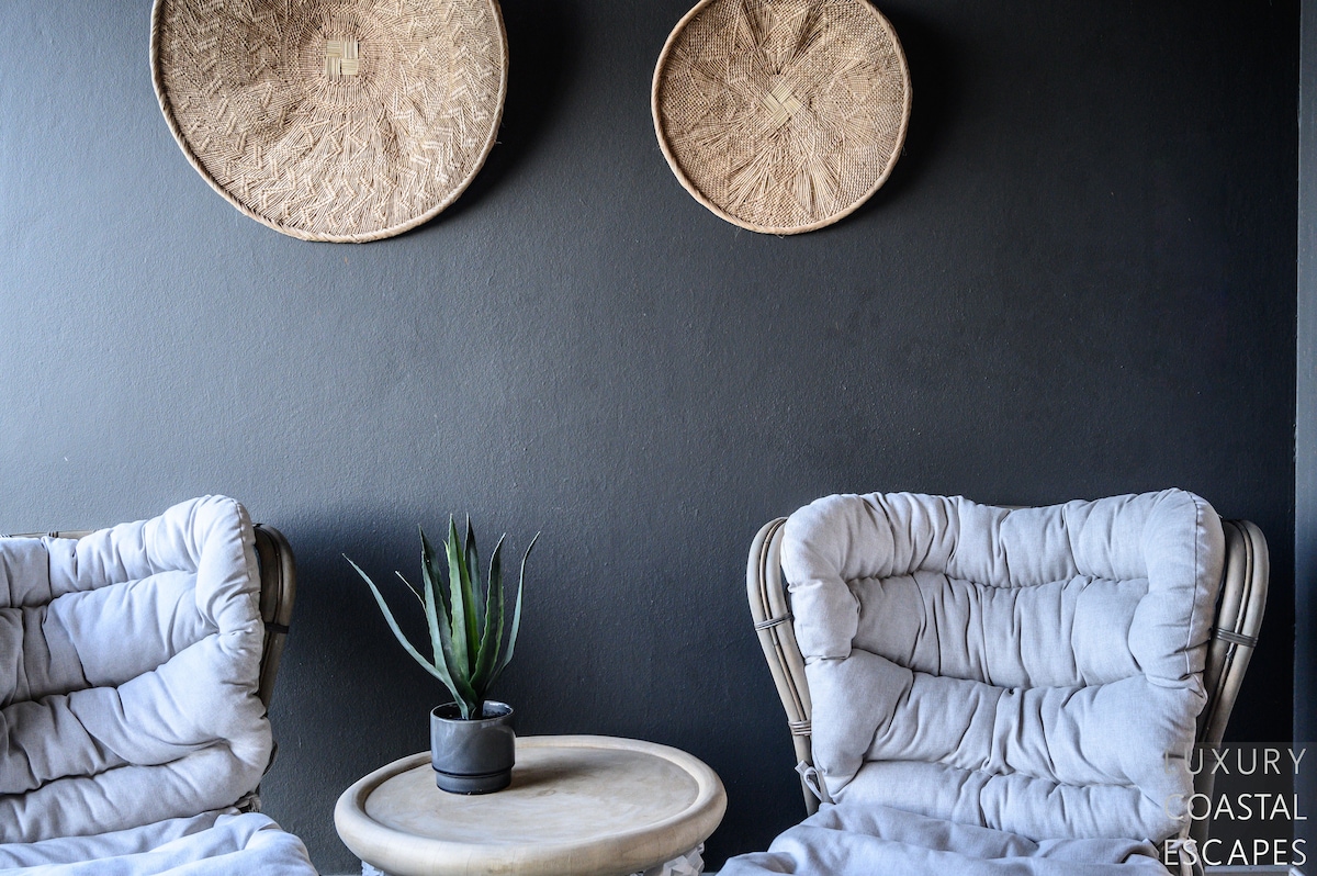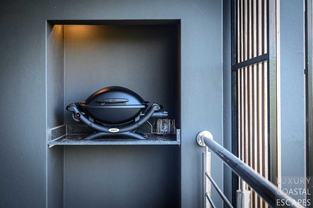 Smaller undercover patio on ground floor with gas braai and two armchairs. The top terrace is not undercover and flows off the loft. Secure Undercover parking available along with guests parking. No Pets allowed